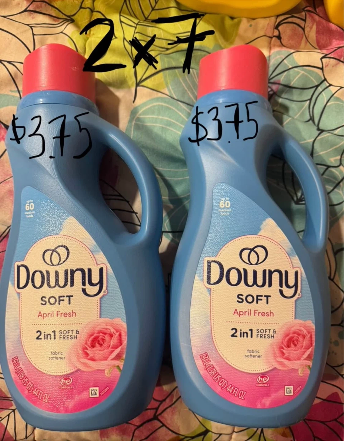 Selling Downy Soft April Fresh 2in1 fabric softener. Each bottle contains 44 fl oz. Up to 60 medium loads per bottle!