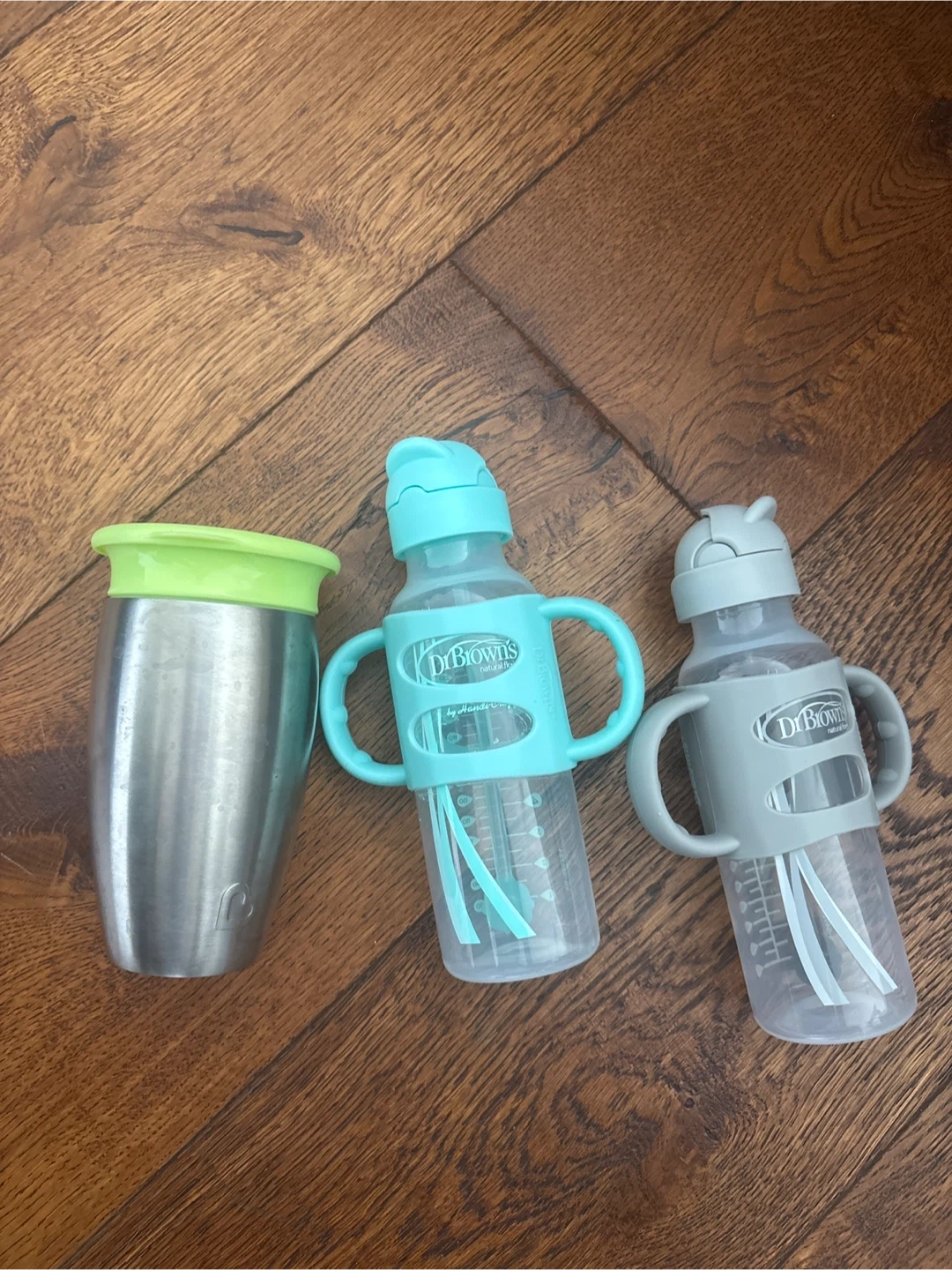 Giving away a set of Dr. Brown's transition bottles and a sippy cup! The bottles are designed to help children transition to straws and the sippy cup is great for transitioning your little one to drink on their own! They're all barely used and ready for a new home