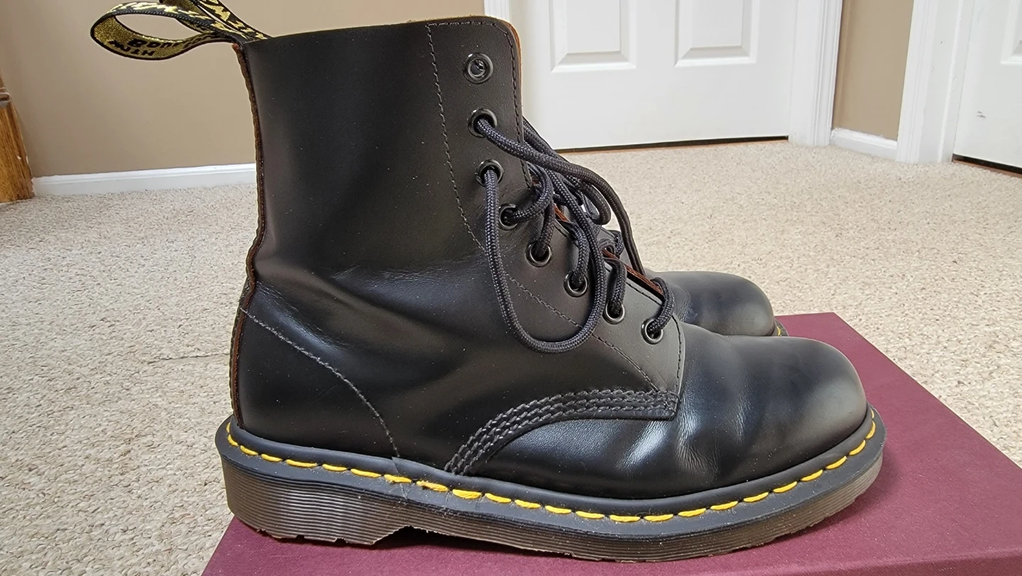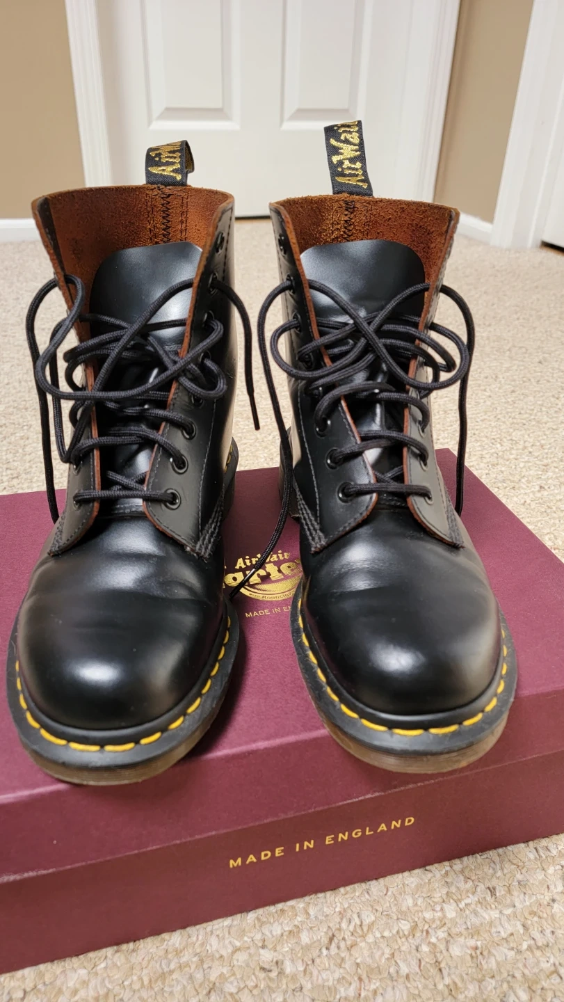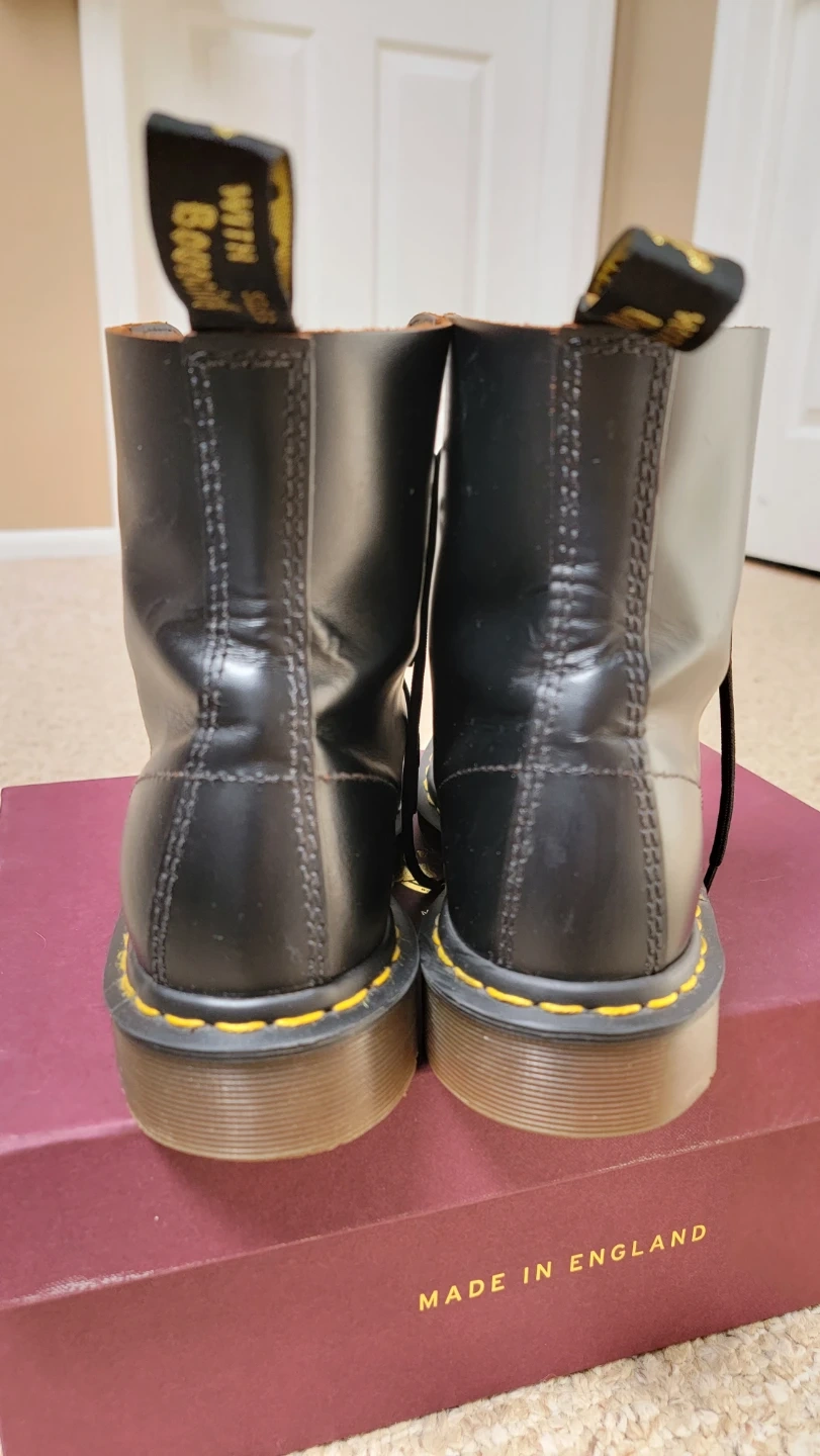 0Selling a pair of Dr. Martens 1460 Smooth Leather Boots in black. These boots are practically new and in great condition and ready for a new owner! They have the classic yellow stitching and are Made in England. Perfect for adding some edge to your style. Men's size 8 or women's size 9