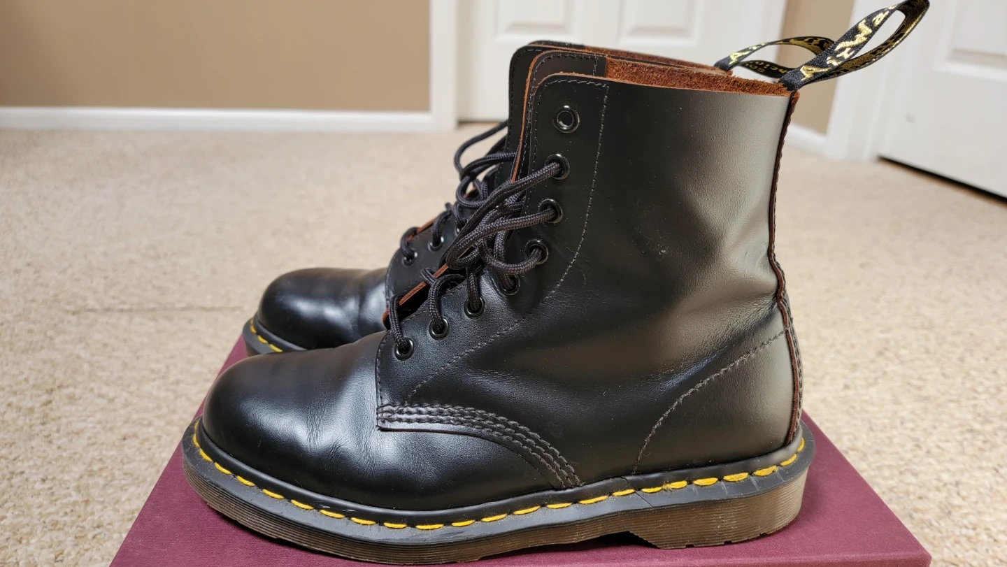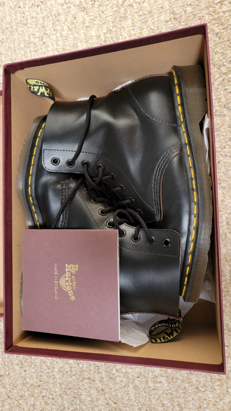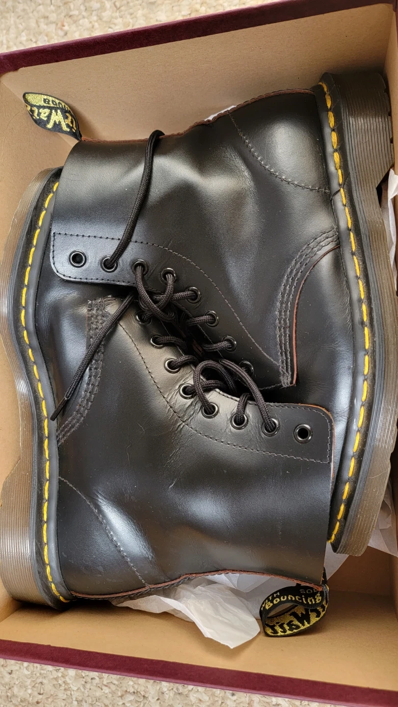 0Selling a pair of Dr. Martens 1460 Smooth Leather Boots in black. These boots are practically new and in great condition and ready for a new owner! They have the classic yellow stitching and are Made in England. Perfect for adding some edge to your style. Men's size 8 or women's size 9