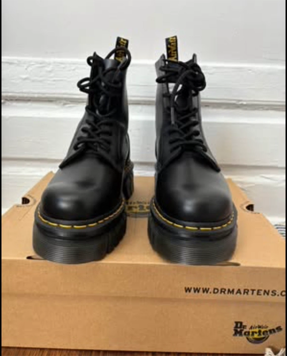 Selling a pair of Dr. Martens platform boots in black leather. They come with the original box! These boots are super stylish and in great condition, ready for a new owner
