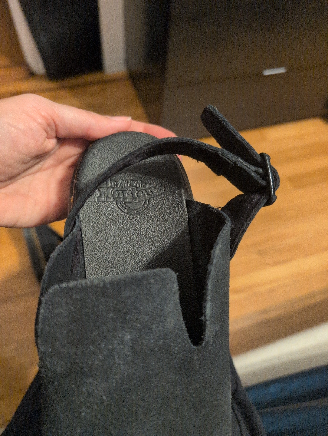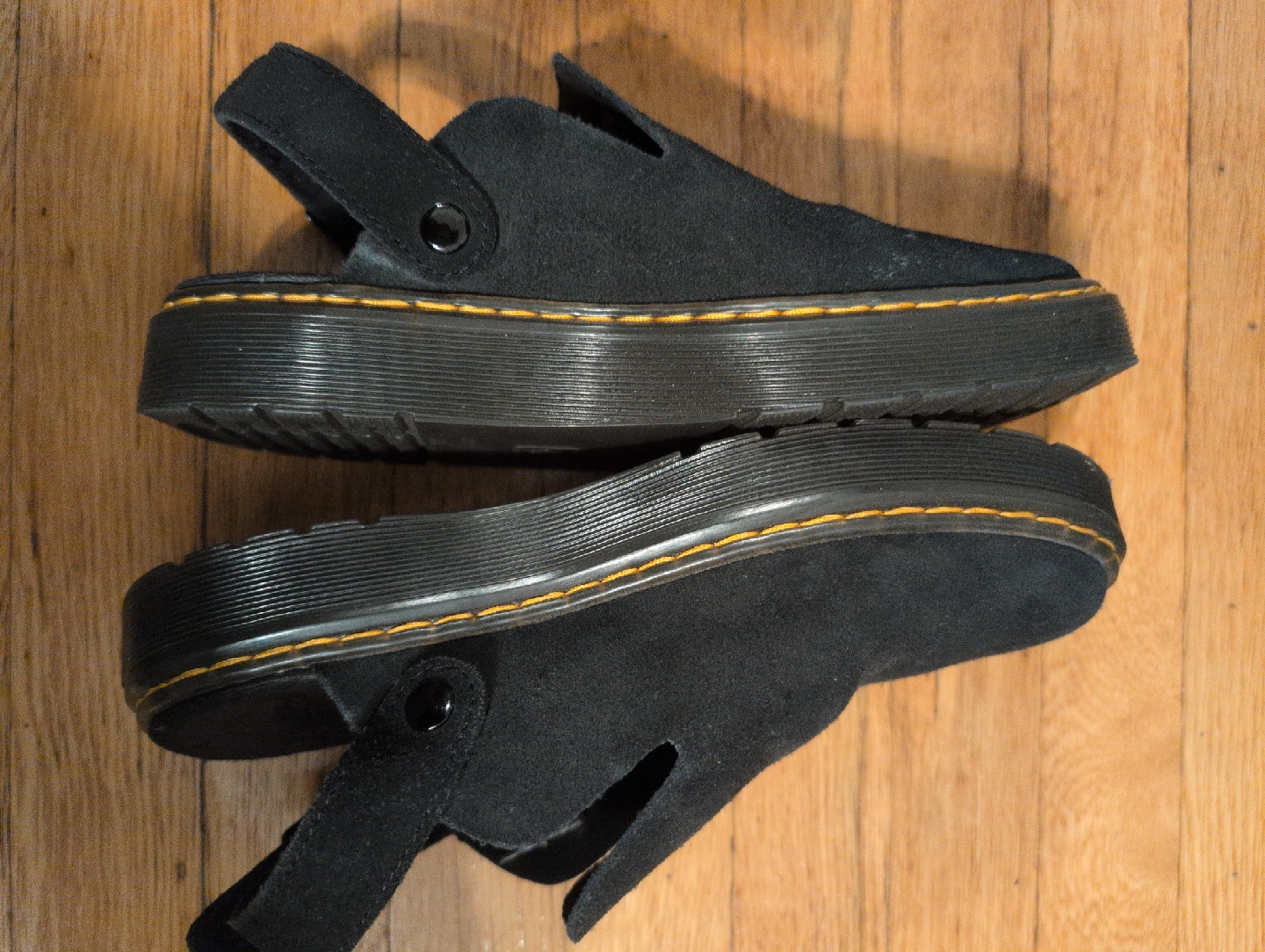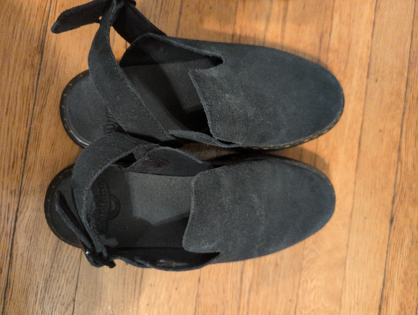 Selling a pair of Dr. Martens Carlson mules in black. They are in good condition. These stylish and comfortable mules are perfect for everyday wear! like new condition purchased last winter and just worn in the office a few times can wear with or without the ankle strap adjustable buckle, I sized down ( DM sizing runs large) i'm normally a 8 1/2-9 in US sizing suede material weather treated anti slip bouncing soles