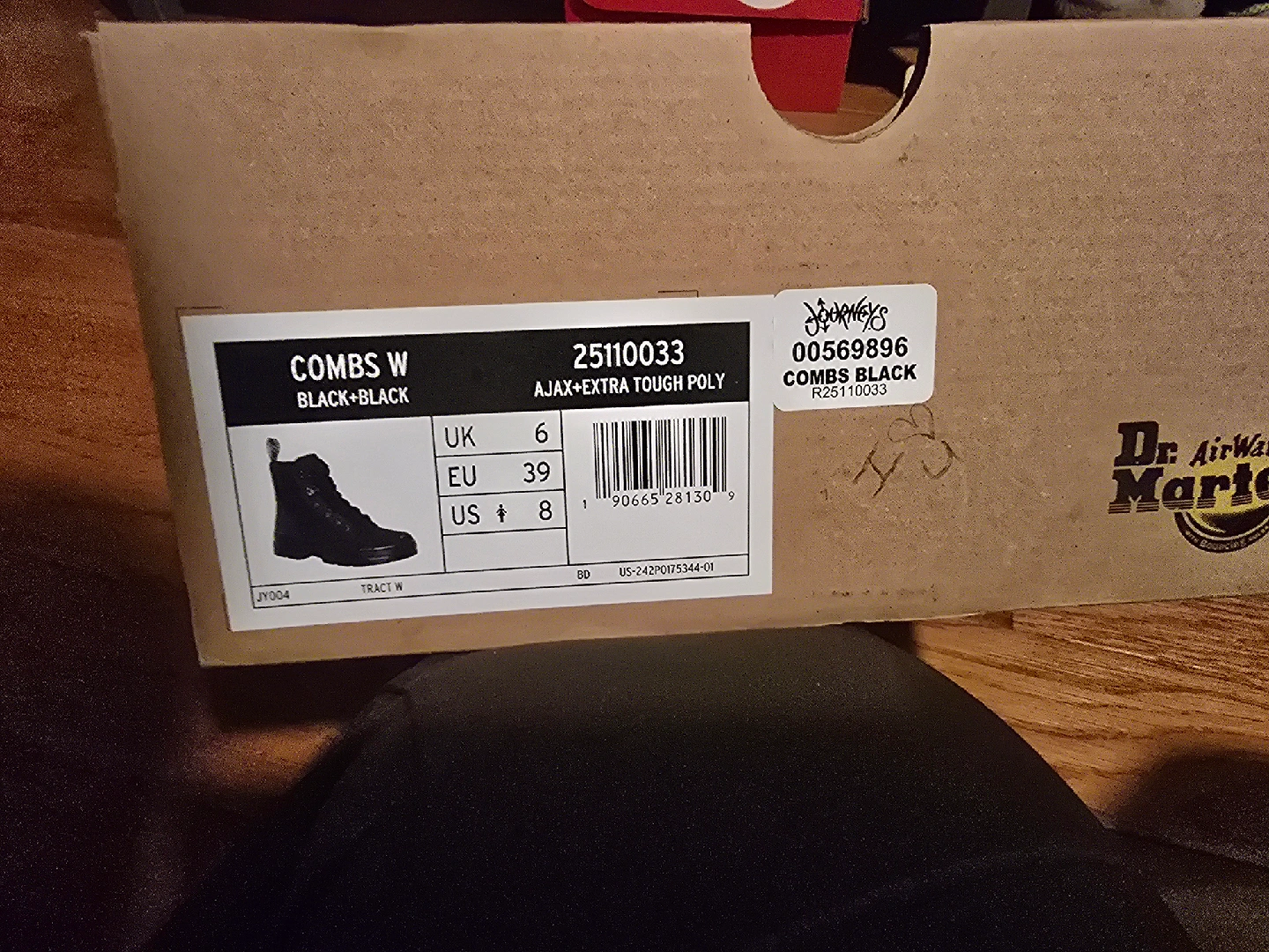 Dr. Martens Combs W boots in black! They're a US size 8. These boots are in great condition and come with the original box
