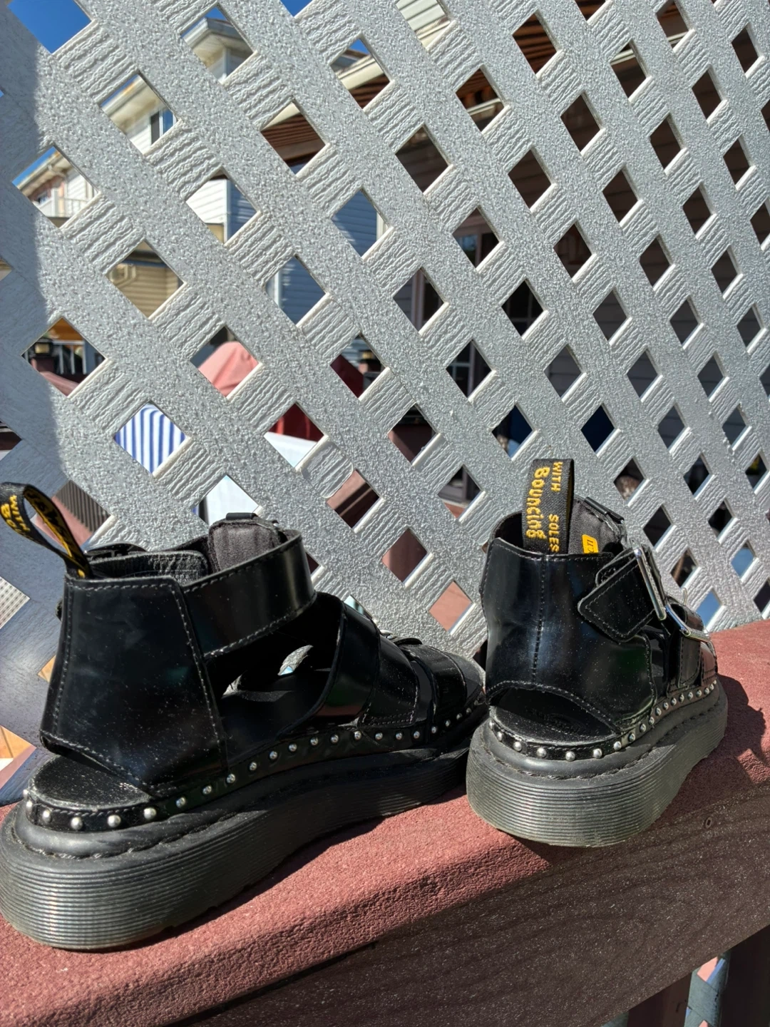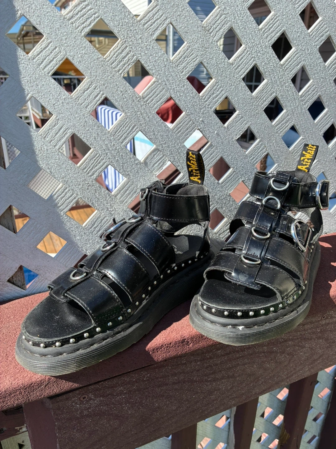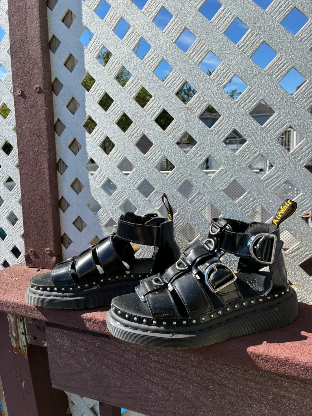 Selling a pair of Dr. Martens Gryphon sandals in black! They feature a gladiator-inspired design with multiple straps and studded detailing. Comfy and stylish
