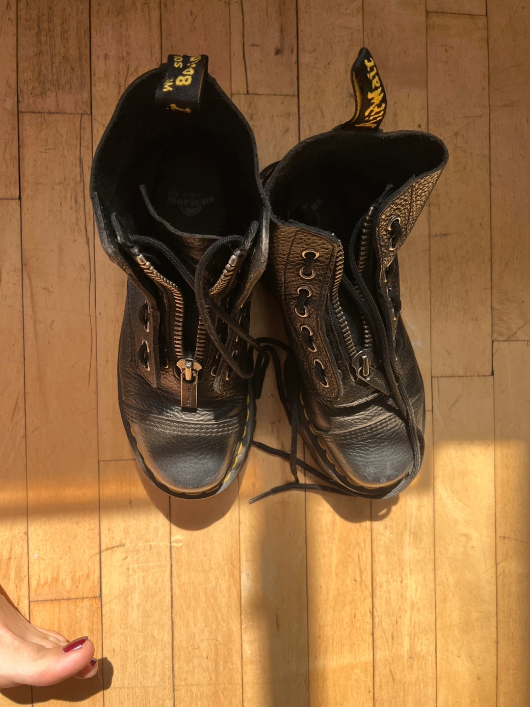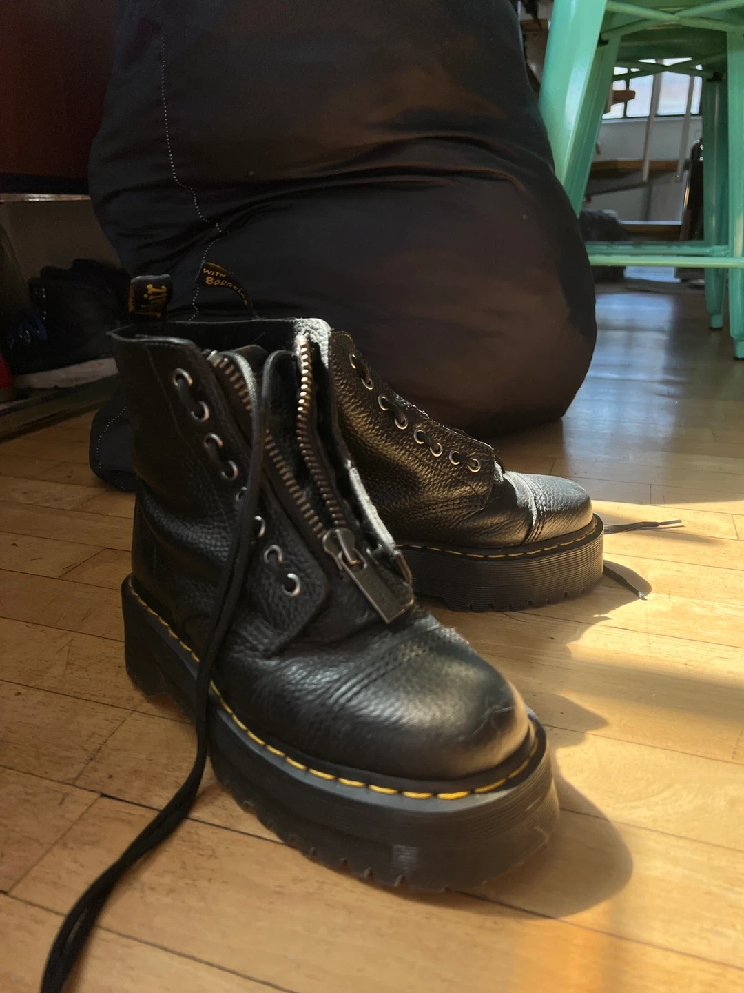 Selling a pair of Dr. Martens Jadon Max Hardware black leather boots! They are a US size 7. These boots feature a cool zipper detail and the classic Dr. Martens chunky platform sole. Perfect for adding an edgy touch to any outfit. Worn once.