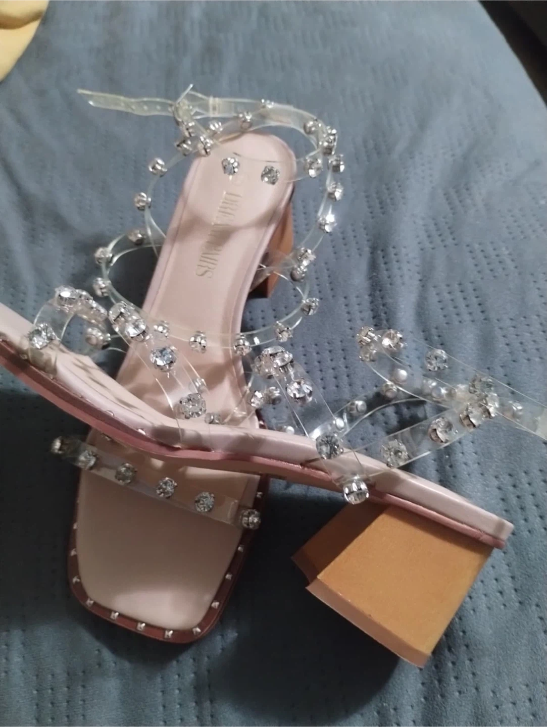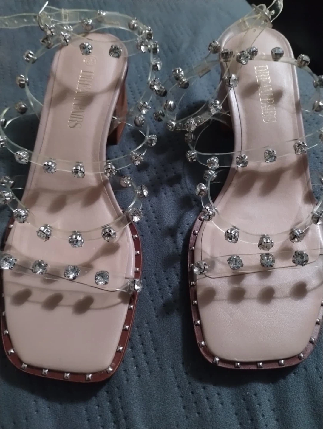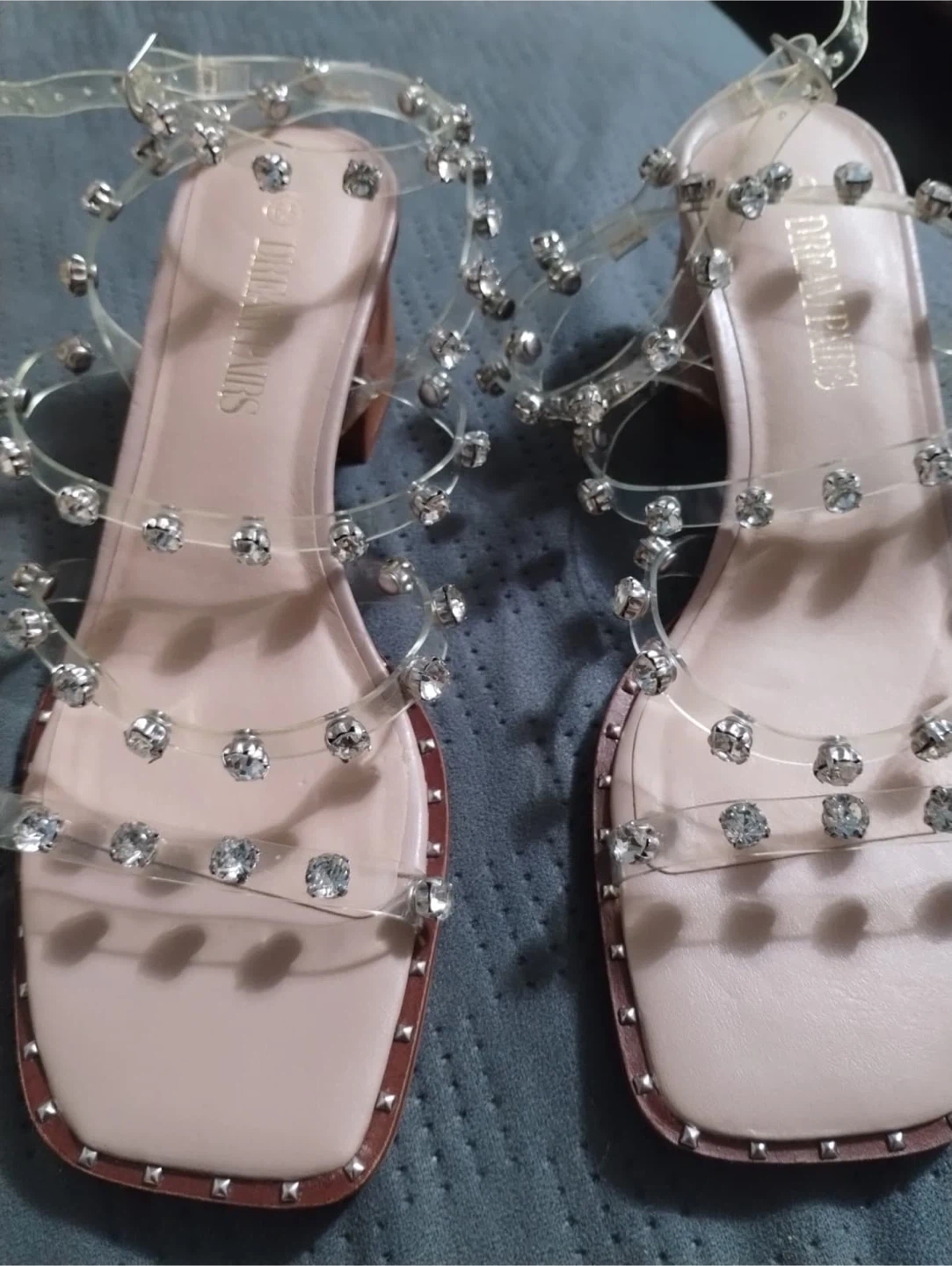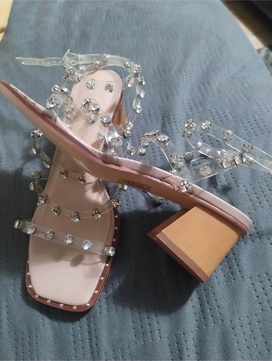 These Dream Pairs heels feature clear straps adorned with sparkly embellishments! They're a size 10 and have a chunky, comfortable heel. Perfect for adding a touch of glam to any outfit