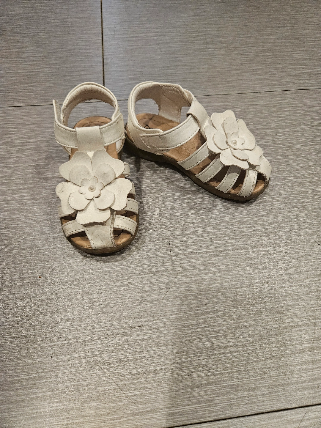 These adorable Dream Pairs sandals are perfect for your little one! They're white with a cute flower design and are a size US 6T. The box is included!