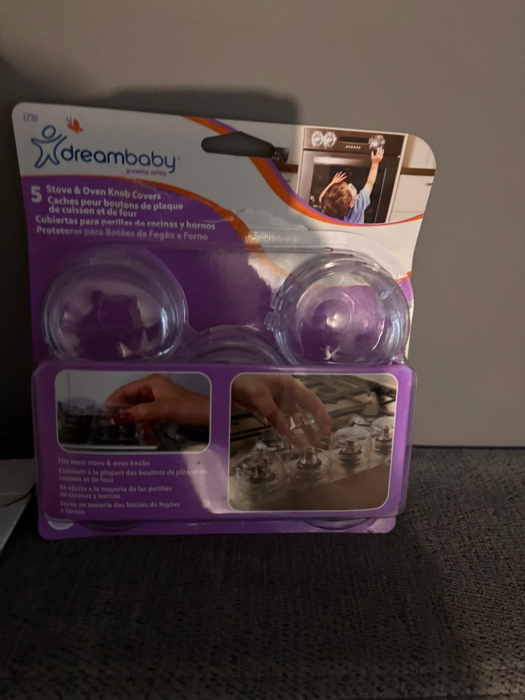 18Selling a pack of Dreambaby Stove & Oven Knob Covers. These clear plastic covers are designed to help protect your child by preventing access to stove and oven knobs. Each pack contains 5 knob covers. Originally bought for $21.99