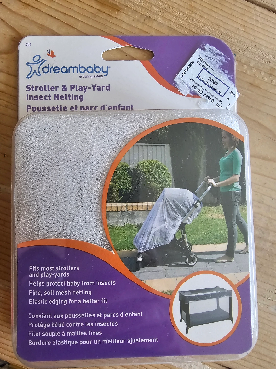 I'm selling a brand new Dreambaby Stroller & Play-Yard Insect Netting! It fits most strollers and play-yards and helps protect baby from insects. It features fine, soft mesh netting and elastic edging for a better fit