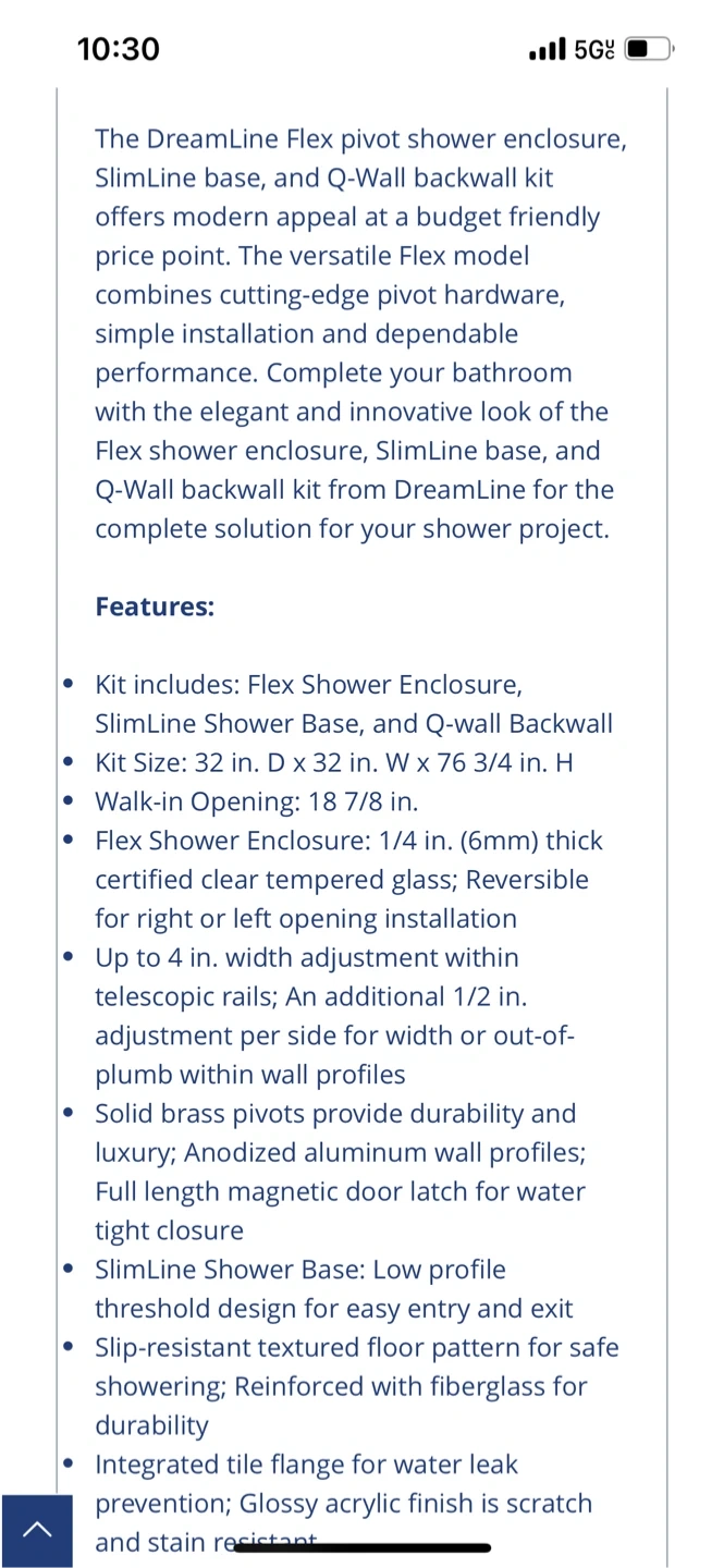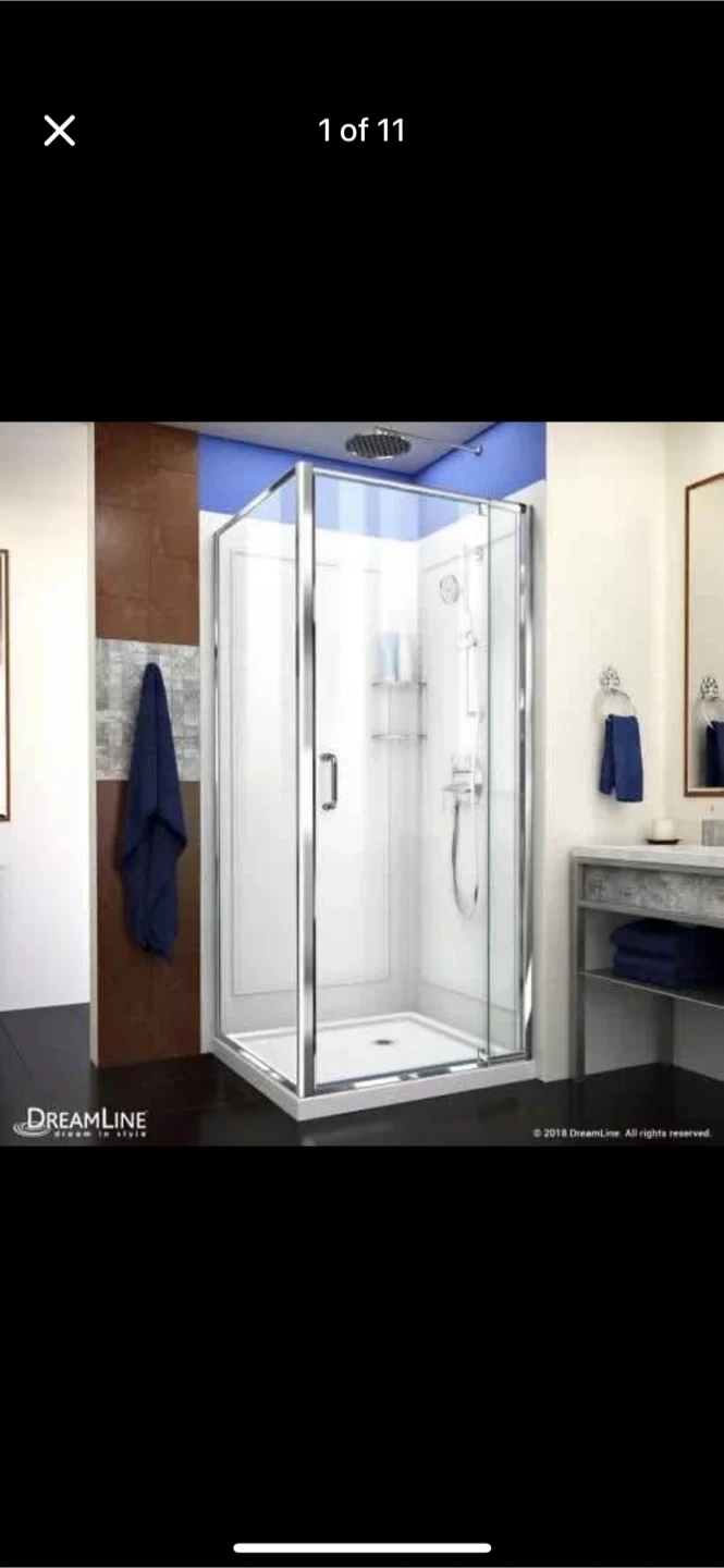 83DreamLine Flex 32 in. D x 32 in. W x 76 3/4 in. H Semi-Frameless Shower Enclosure in Chrome with Corner Drain Base and Backwalls, new open box. We decided to go for a but tub. Selling for more than half price $600 All details on the pictures Pick up only .
