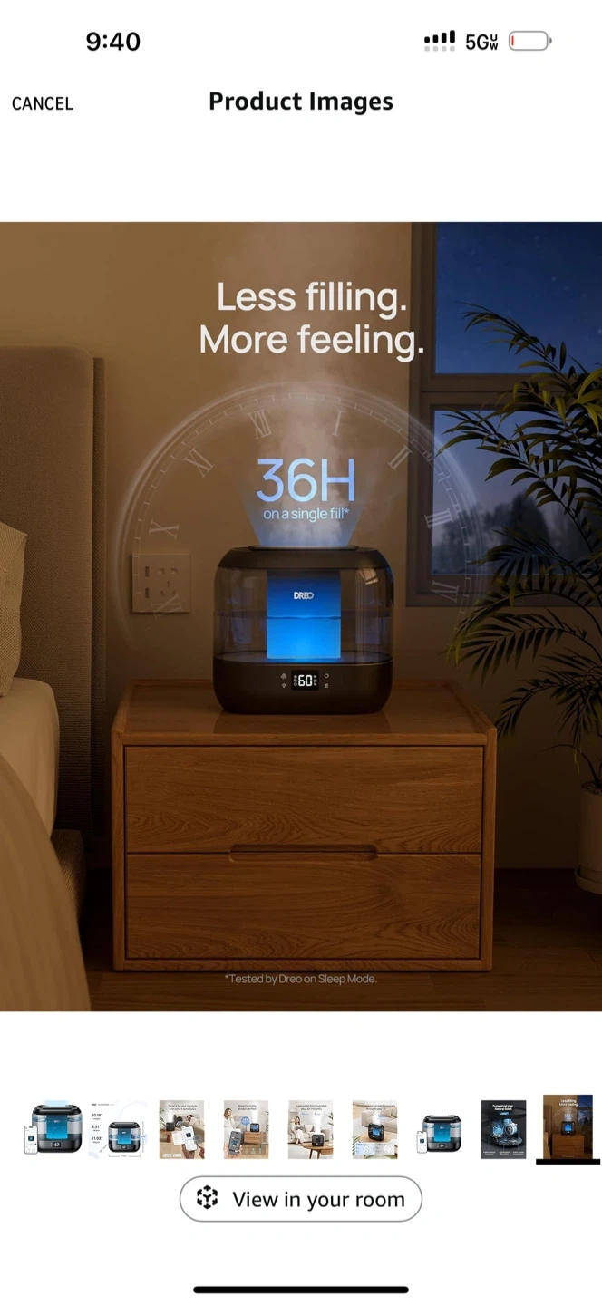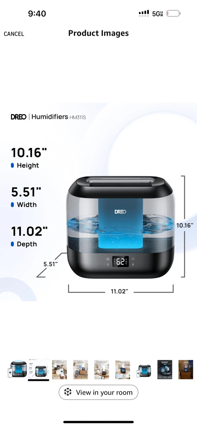 Selling a Dreo Humidifier, model HM311S. It's in great condition and ready to use! Really silent. Key features: - Height: 10.16 inches - Width: 5.51 inches - Depth: 11.02 inches Selling because we are moving!