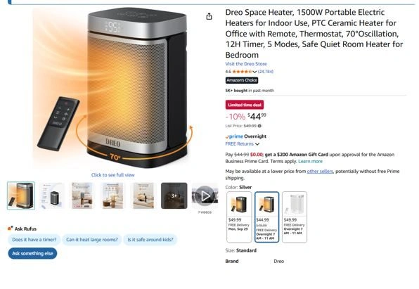DREO Space Heater Indoor – 1500W Portable Heater (Like New)