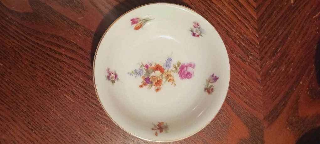 1000+Here's a lovely Dresden Fine German Porcelain Mini Candy Bowl with a beautiful floral design! It's perfect for adding a touch of elegance to your table or collection !! Made in Germany ๐ฉ๐ช. 5" diameter. ( I have 2 of these ). Excellent condition. ALL MY PRICES ARE NEGOTIABLE !!
