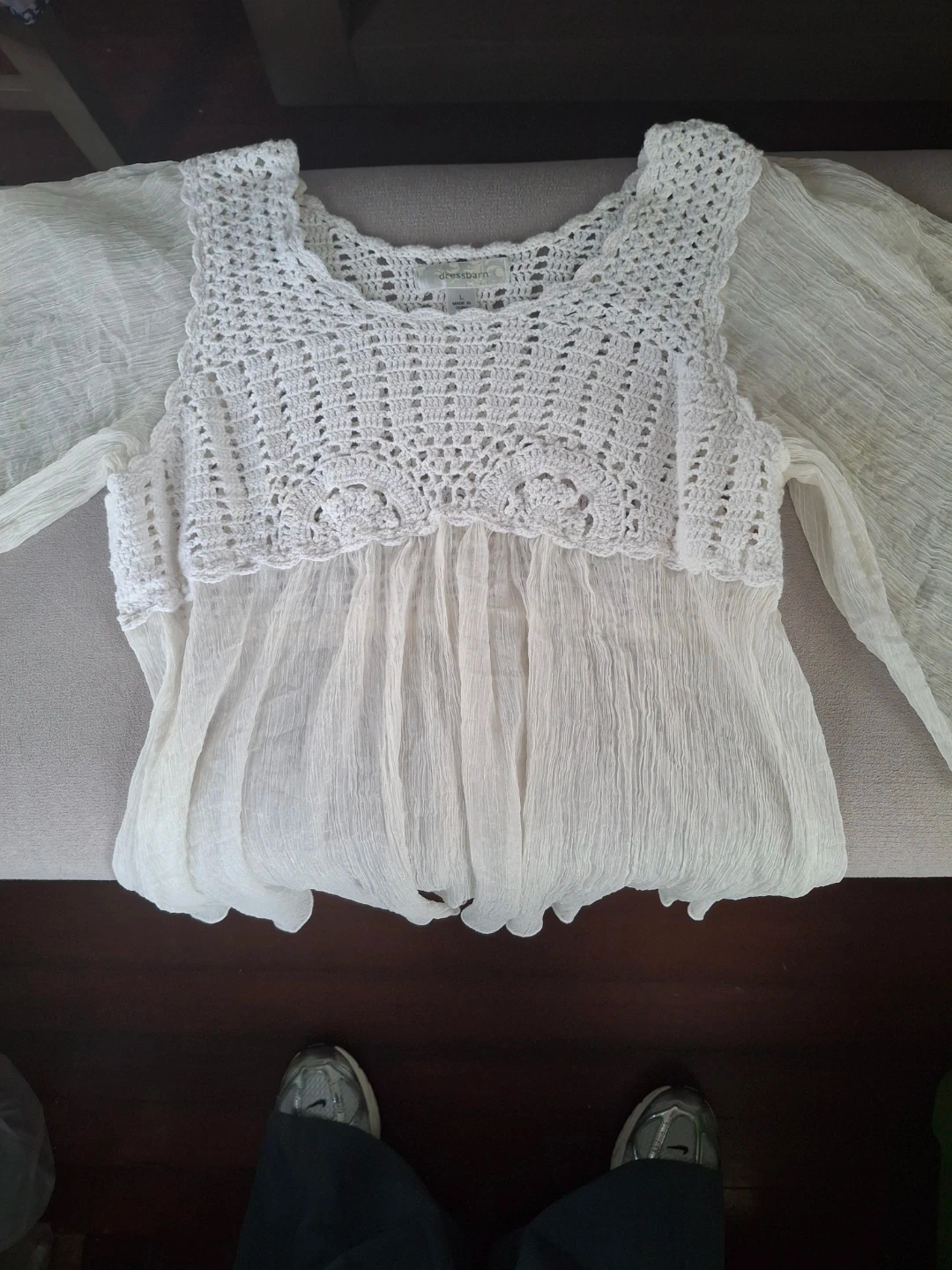 60Selling a cute Dressbarn crochet top in a size large! It's in great condition and ready for a new home. The crochet detailing is really pretty!