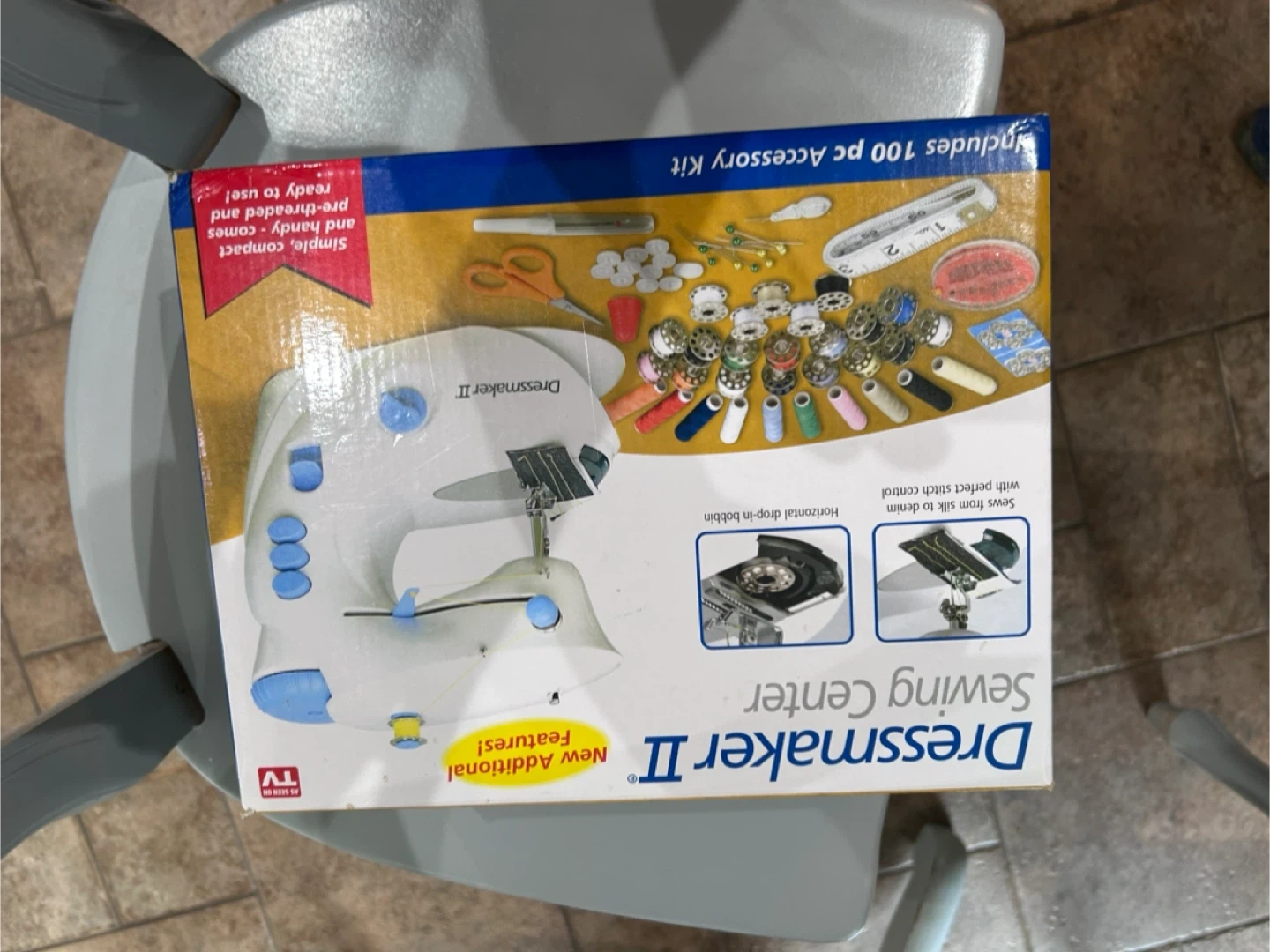10Selling a Dressmaker II Sewing Center. It includes 100 pc Accessory Kit. It sews from silk to denim with perfect stitch control. Horizontal drop-in bobbin. Comes with additional features and is simply compact and handy, comes ready to use! Includes the box and components.