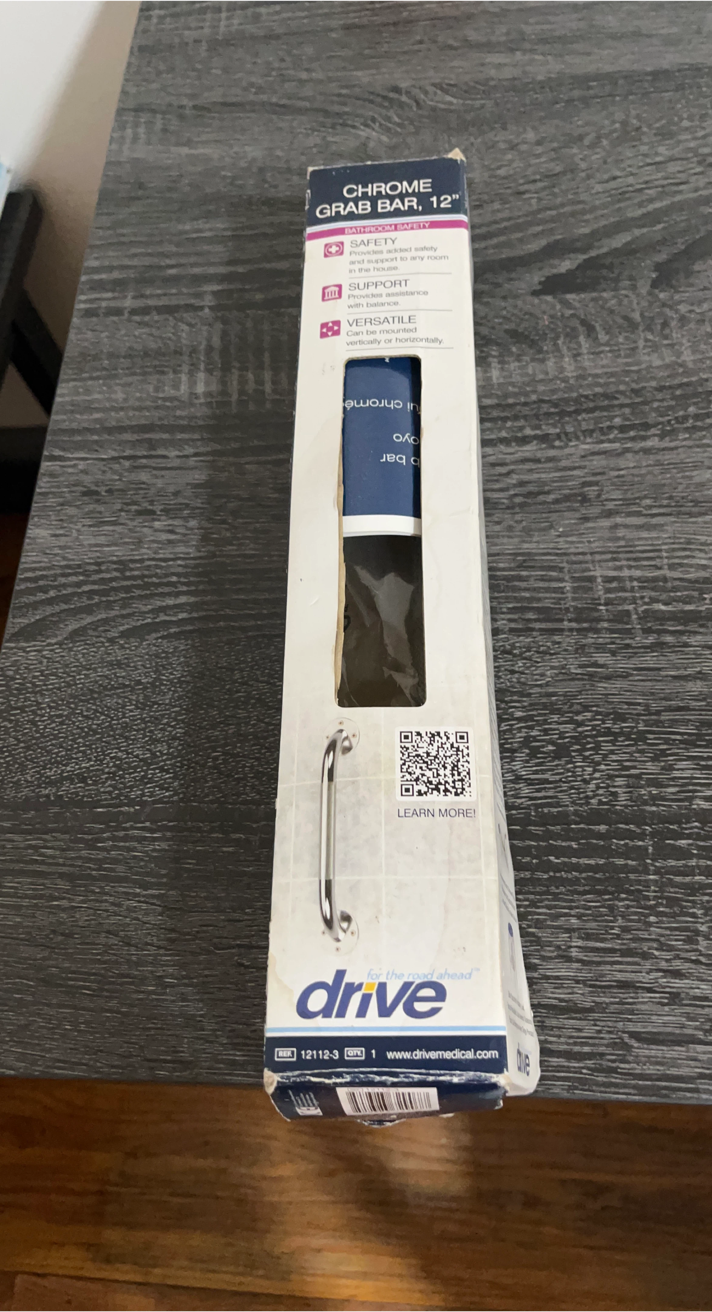 60Selling a Drive Chrome Grab Bar, 12 inches long. This bathroom safety bar provides added safety and support to any room in the house. It also provides assistance with balance and can be mounted vertically or horizontally