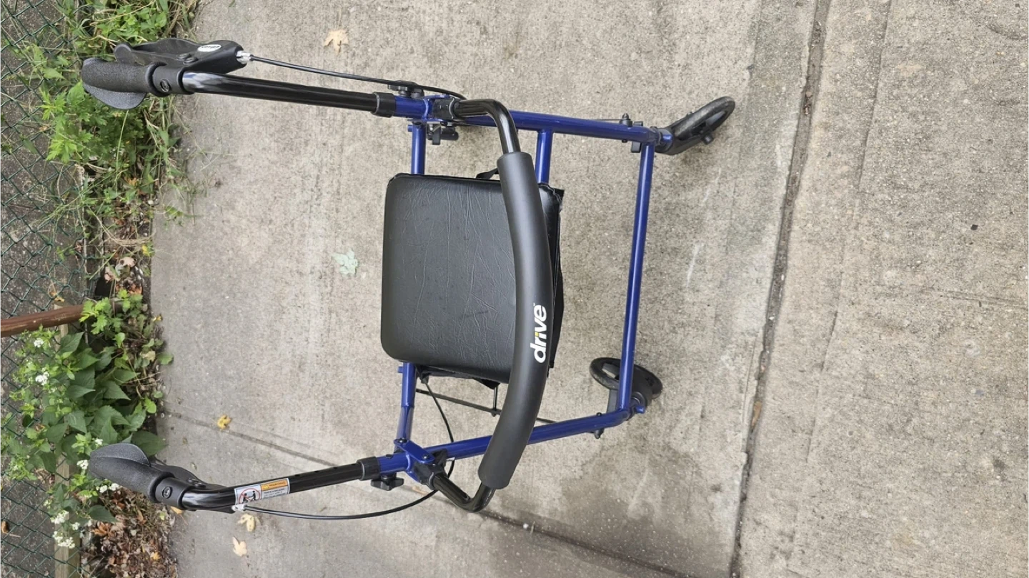10Selling a Drive Medical folding walker in blue. It's lightweight and easy to fold for storage or transport. Features a seat for resting when needed.