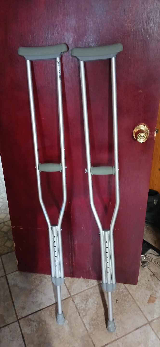 Selling a pair of Drive Medical crutches. They are adjustable and can support a max user mass of 350 lbs / 158 kg