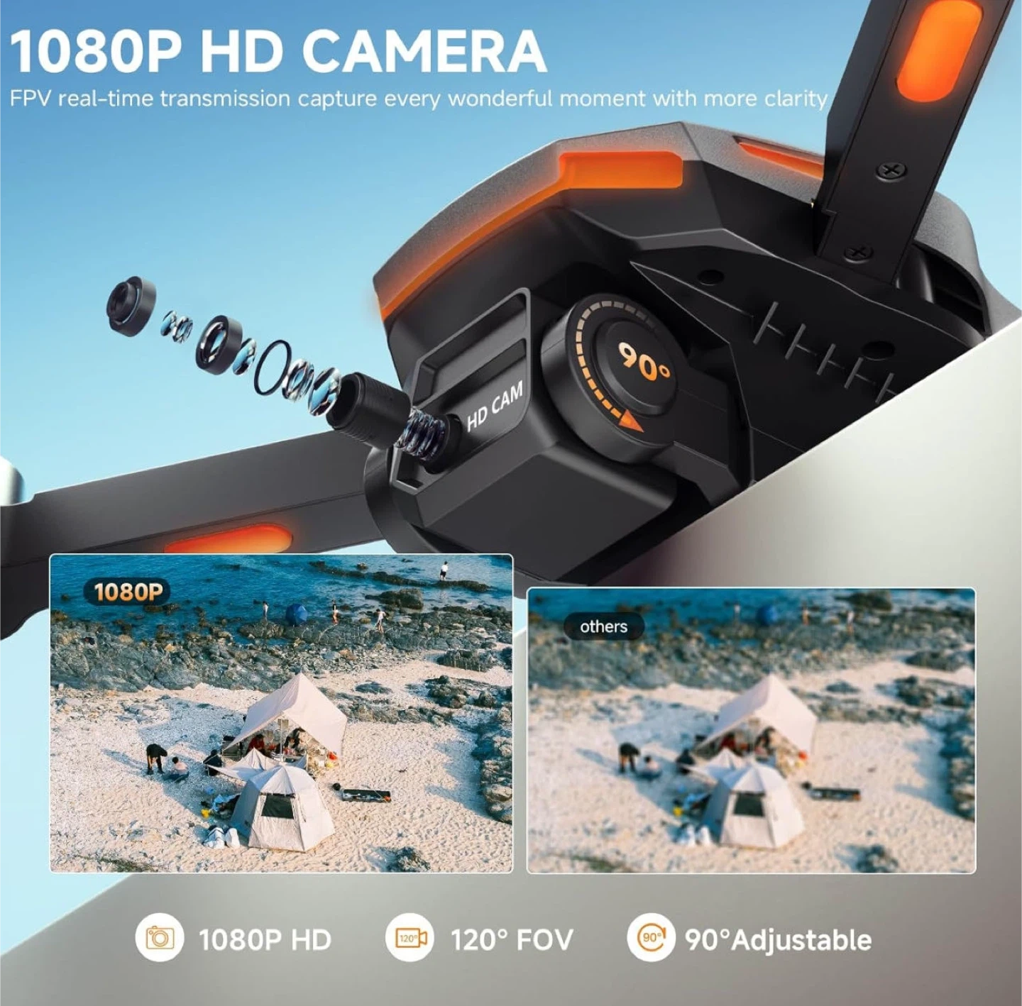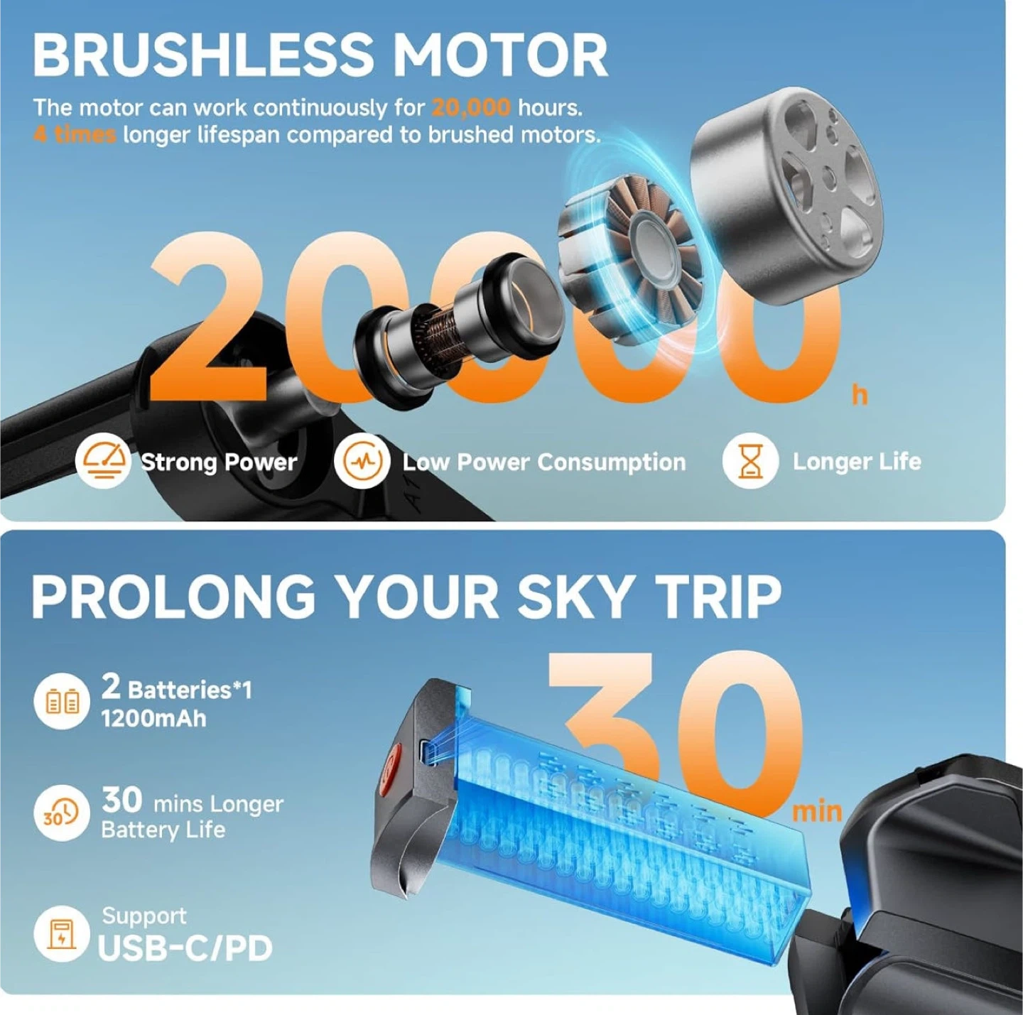 172Drone with Camera for Adults, Brushless Motor FPV Foldable RC Drones for Kids with 2 Batteries HD 1080P, Altitude Hold, Headless Mode, One Key Start, 360° Flips, Beyond-Range Loss Alert, Toys Gifts for Men Boys