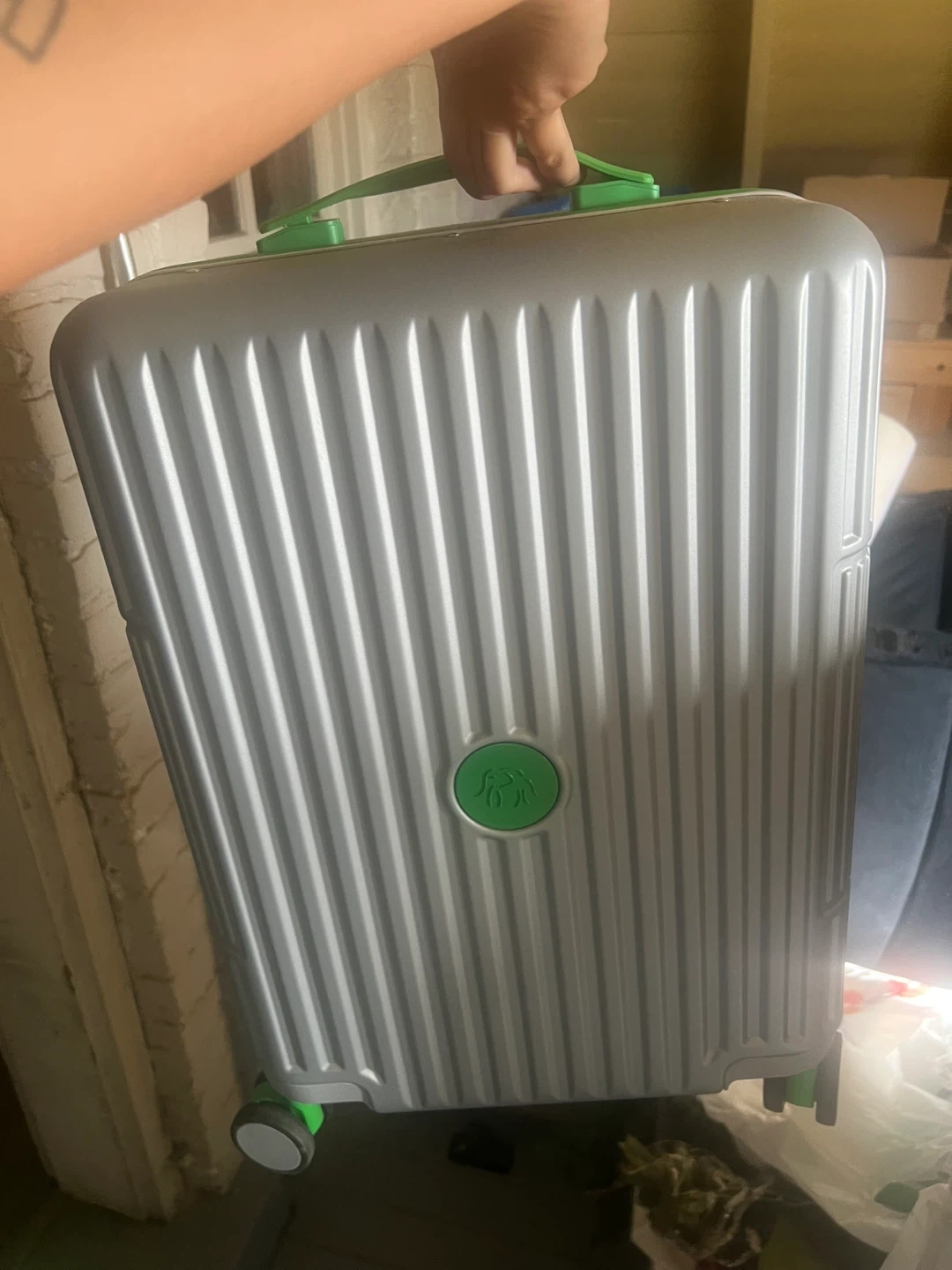 15Selling a Drunk Elephant carry-on luggage. It's in great condition and ready for your next adventure! The luggage features a unique design with a gray body and vibrant green accents. Perfect for travel! LIMITED EDITION