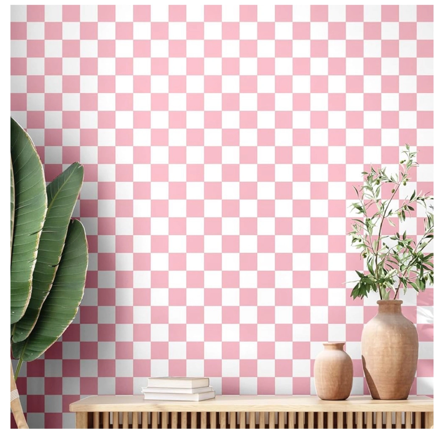 Selling a roll of Drydiet wallpaper with a pink and white checkered pattern. Never used! It's perfect for adding a fun and stylish touch to any room. This wallpaper is easy to use and will transform your space!