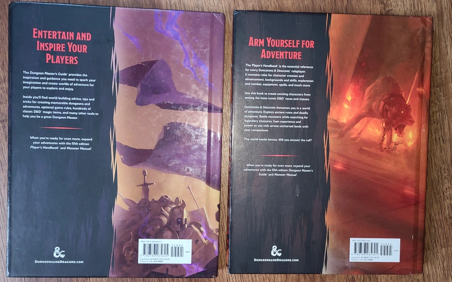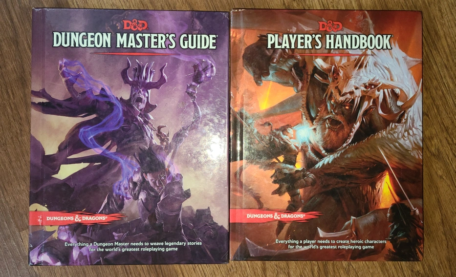 Selling two Dungeons & Dragons 5th Edition books: Dungeon Master's Guide and Player's Handbook. Great condition for your next adventure! some minor damage to the DM guide (pictured) but otherwise both in nearly new condition.