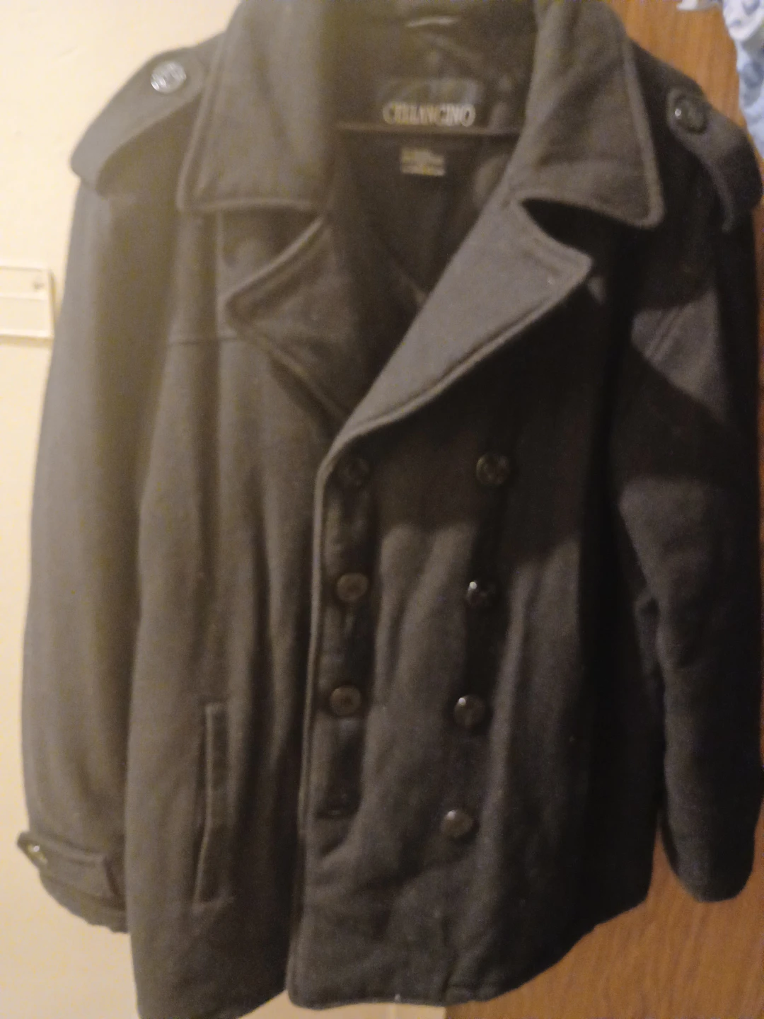 Selling a Celia Cino black coat. It's in good condition and ready for a new owner Pea coat