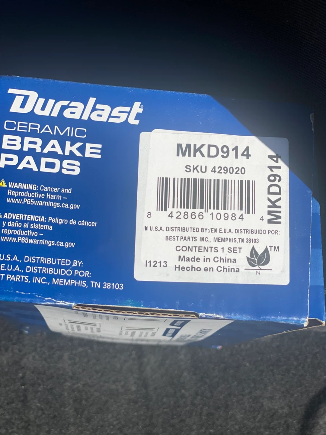 Selling a brand new set of Duralast Ceramic Brake Pads, model MKD914! They are still in the original packaging. - Engineered for OE form, fit, and function - Vehicle-specific friction material - Two-layer shim for reduced noise I bought for my Honda Civic 2013 never used