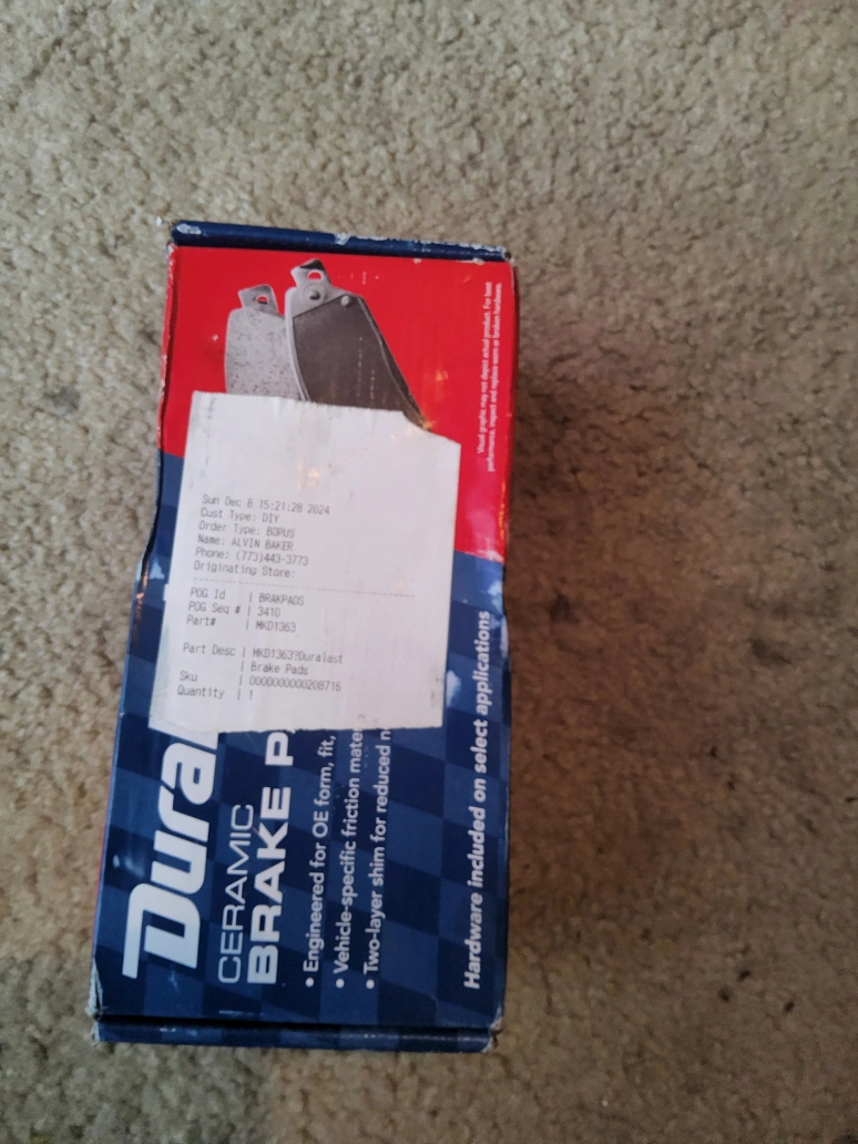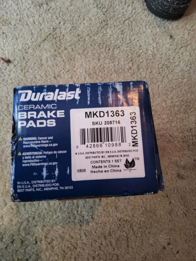 Selling a new set of Duralast Ceramic Brake Pads, model MKD1363! Engineered for OE form, fit, and function, these brake pads feature a vehicle-specific friction material and a two-layer shim for reduced noise