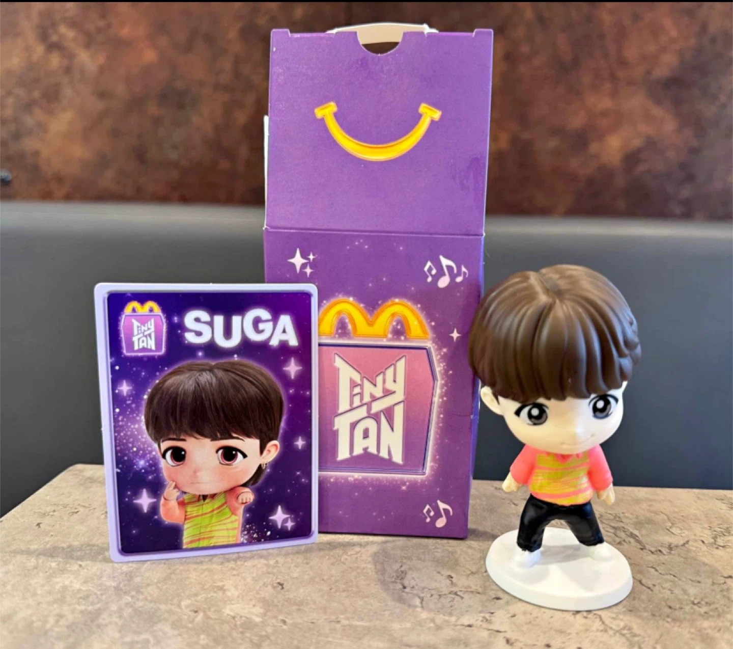 Selling a McDonald's BTS TinyTAN SUGA figure! The set includes the SUGA figurine, a character card, and the original purple box it came in. A great collectible for any BTS fan. Cash please. Thanks!