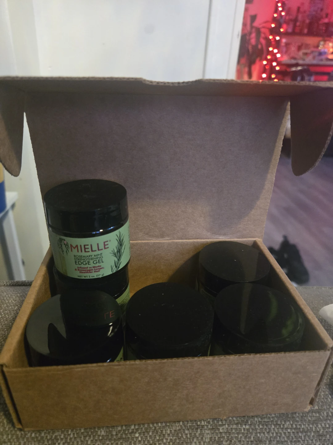 Six jars of Mielle Organics Rosemary Mint Strengthening Edge Gel. Each jar is 2 oz. This gel provides strong hold for hair and edges.