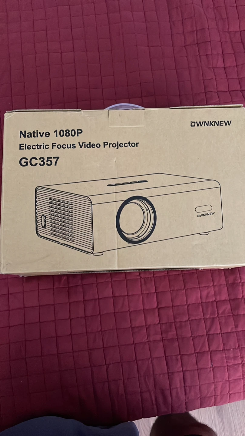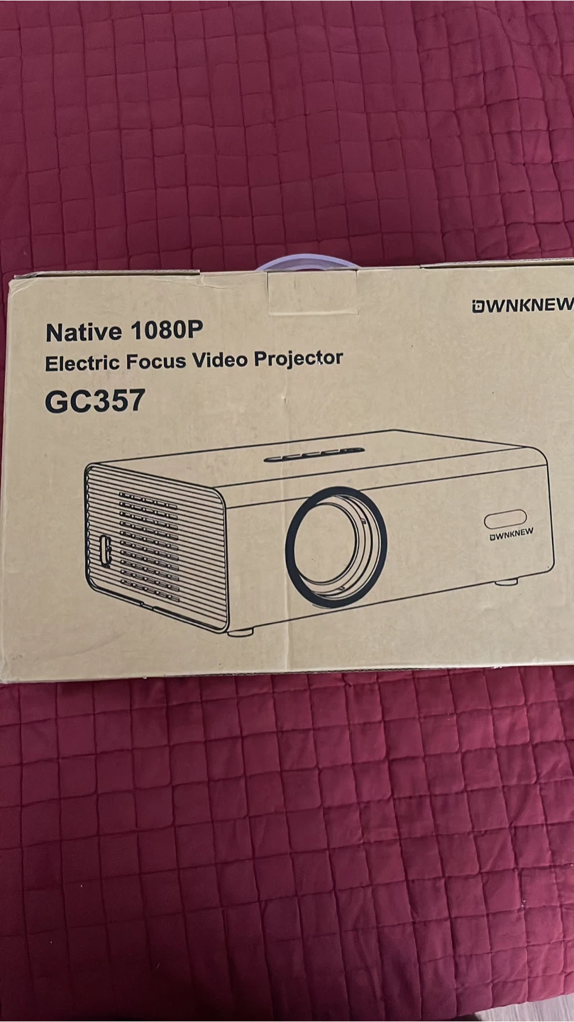 Selling a DWNKNEW GC357 Native 1080P Electric Focus Video Projector. The box is included