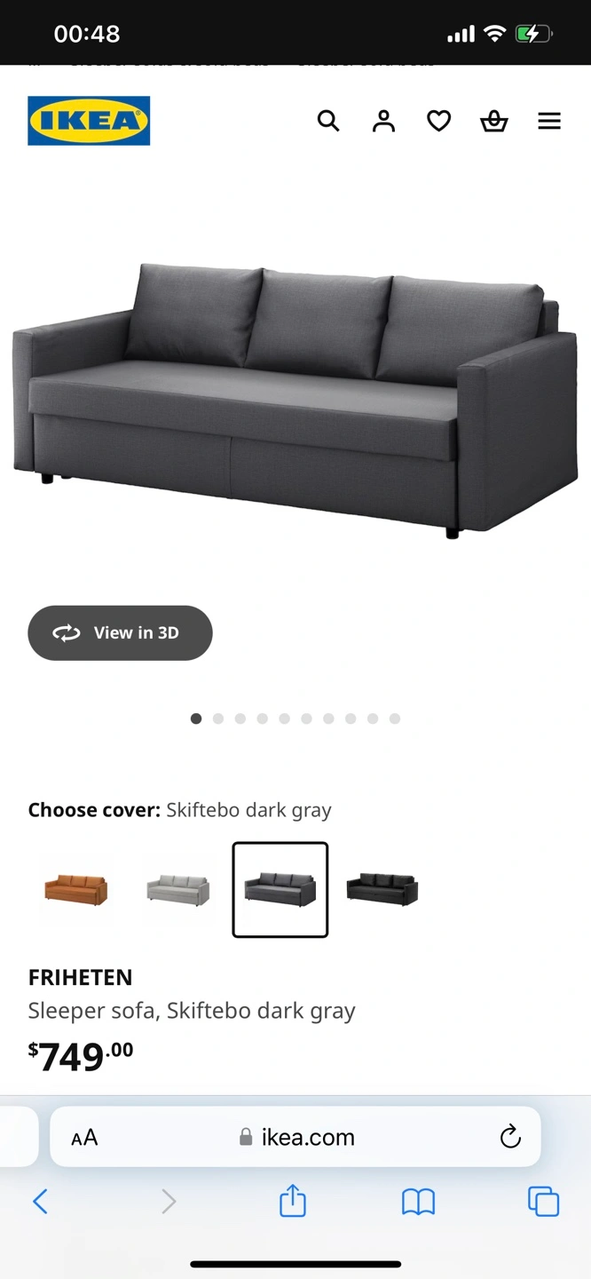 IKEA FRIHETEN Sleeper Sofa - Dark Gray