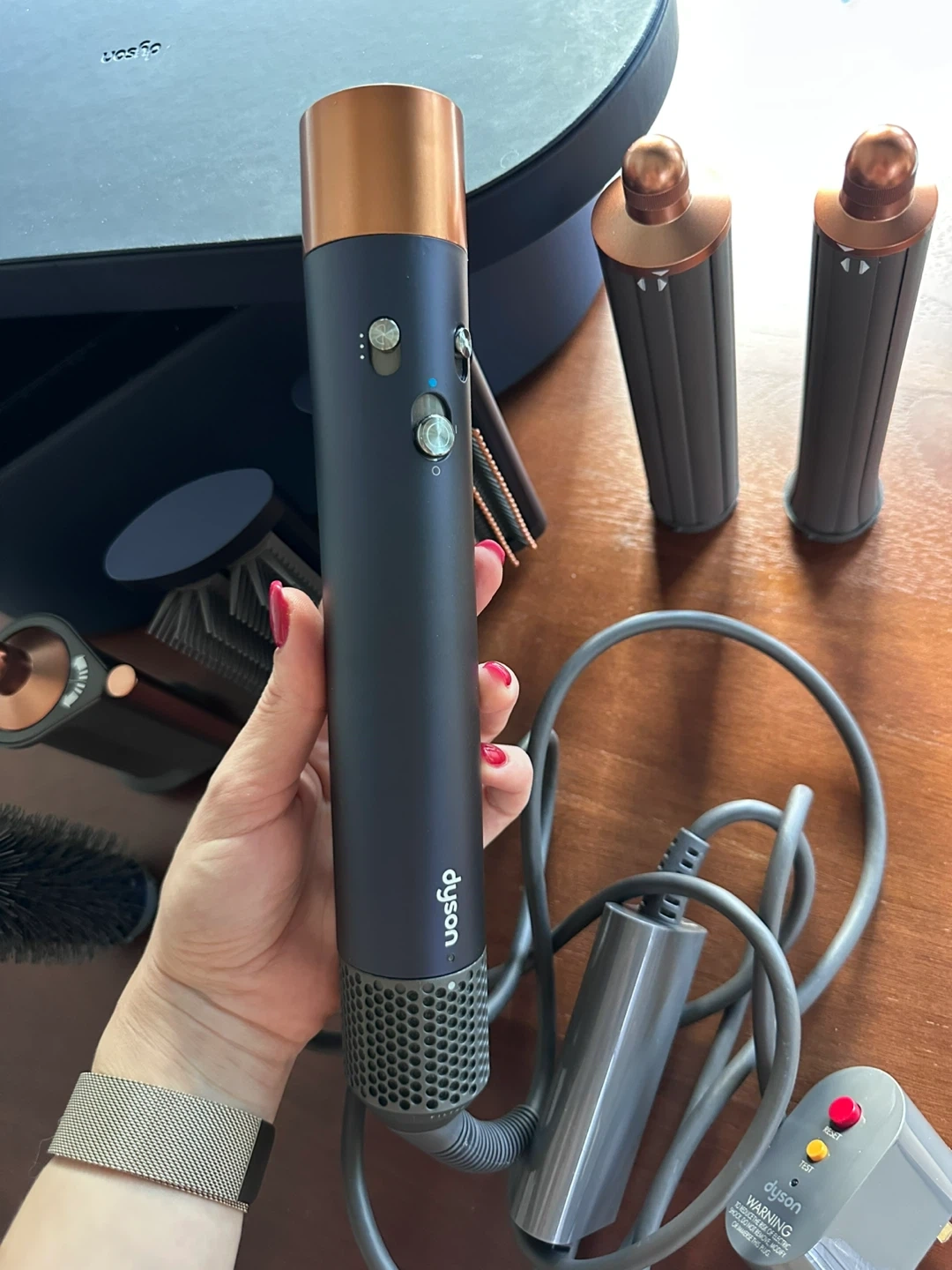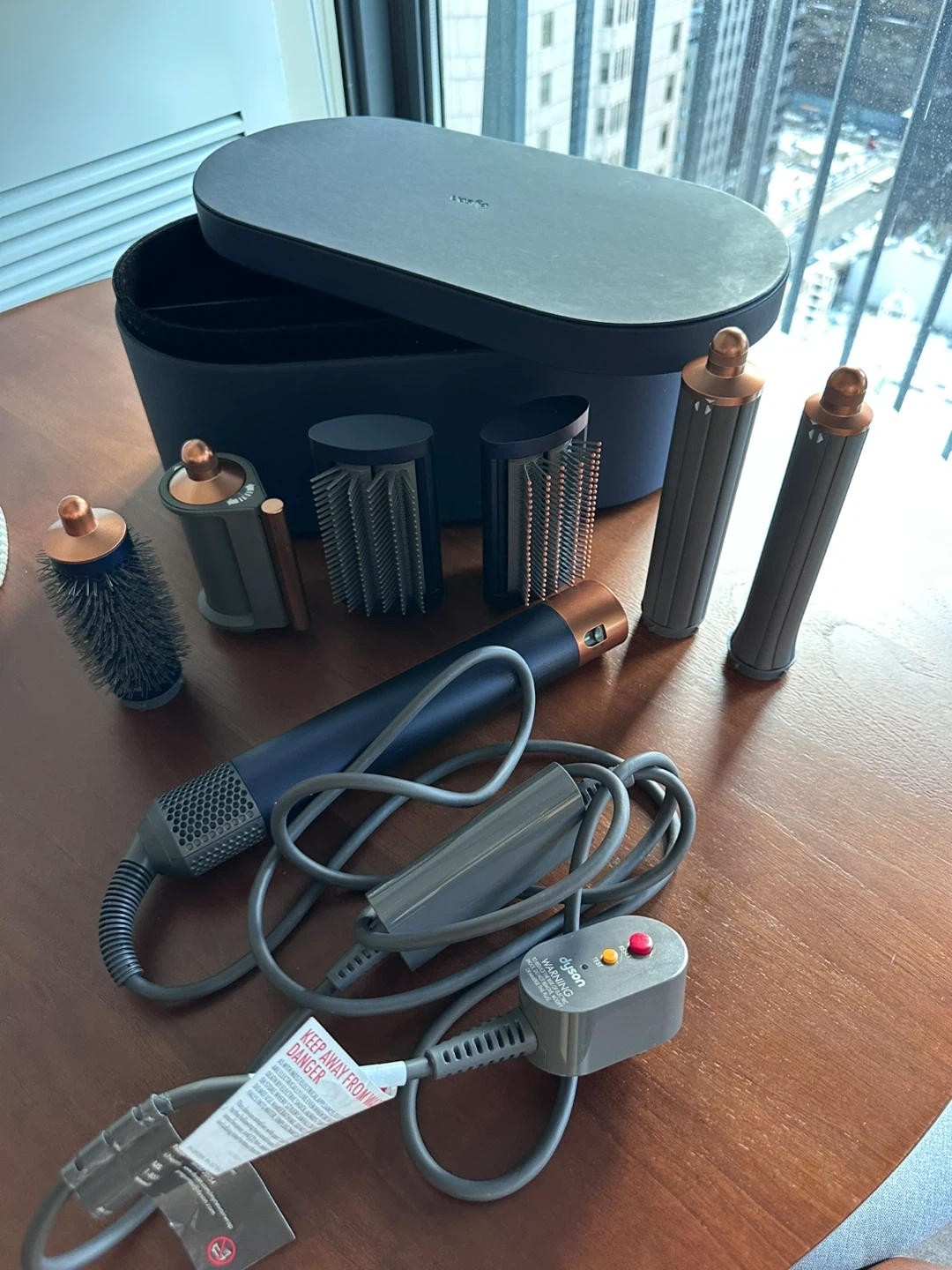 10Selling a complete Dyson Airwrap styler set! It comes with all the attachments and the original box. This styler uses air to curl, wave, smooth and dry hair, so it's gentle and effective. Perfect for creating a variety of hairstyles with ease.