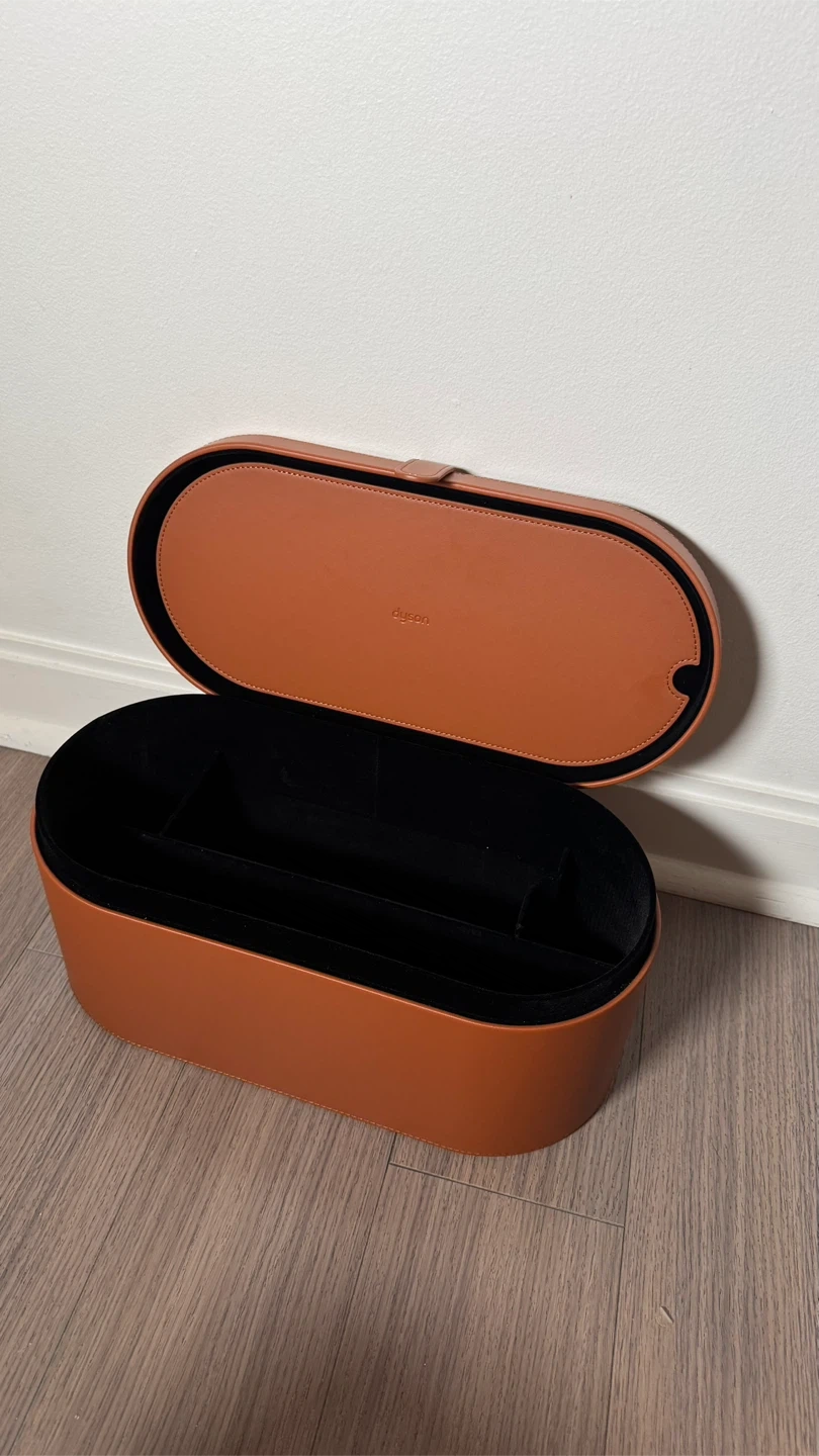Here is a Dyson Airwrap storage case in great condition. It's perfect for keeping your Dyson Airwrap and attachments organized and protected. It has a sleek design and a luxurious feel