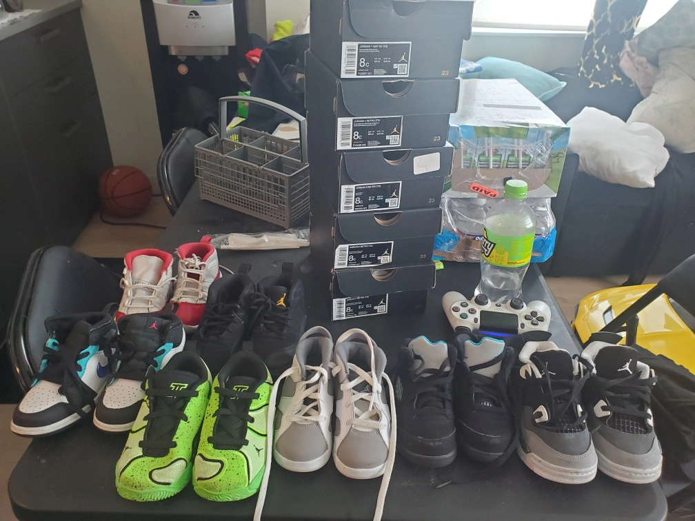 BACK TO SCHOOL SALE.Selling a collection of kids' Jordan shoes in size 8C. These shoes are perfect for your little one. They come in various styles and colors, and many include their original boxes. bundle of 7