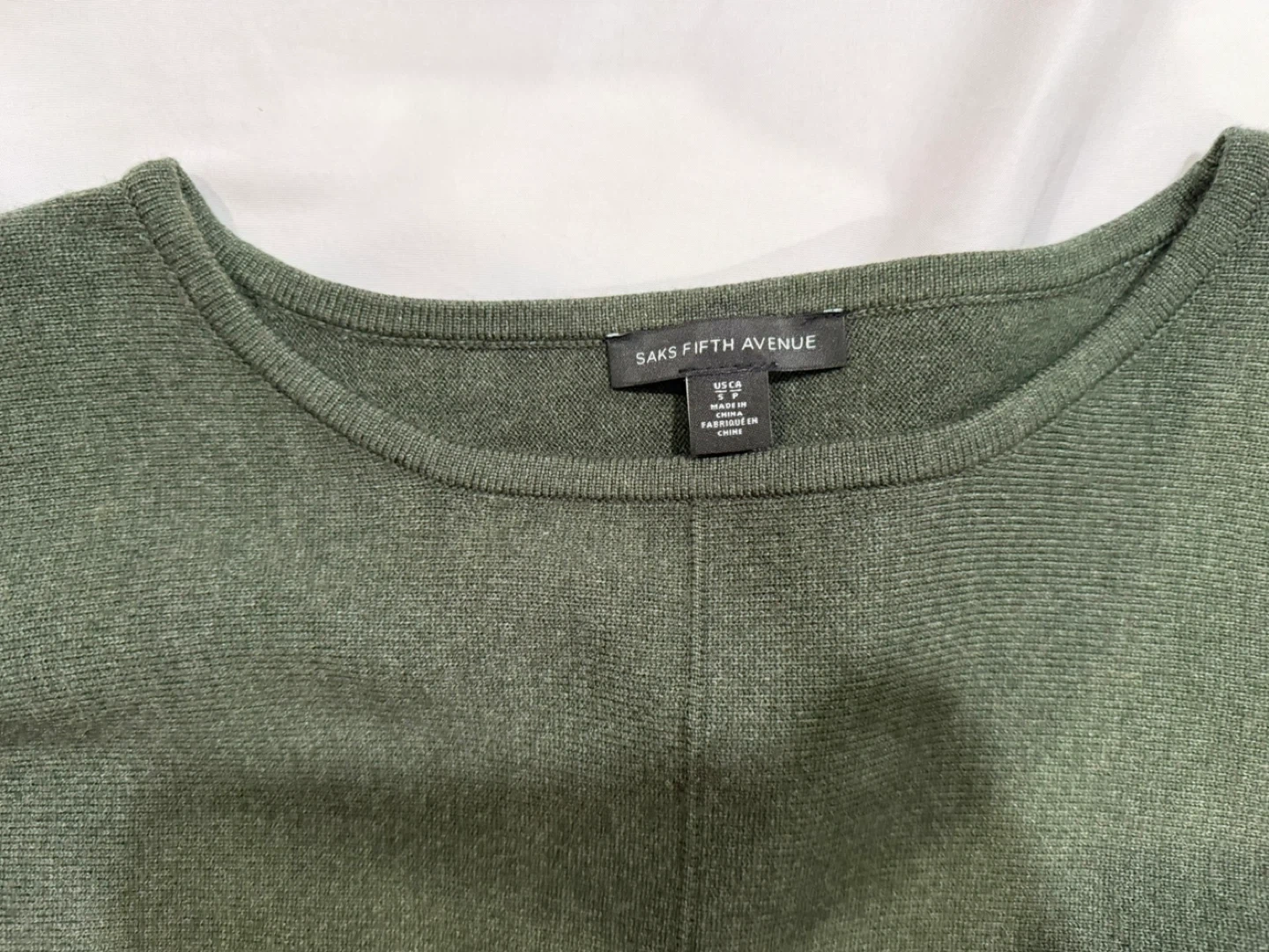 Saks Fifth Avenue Green Fur Cuff Sweater