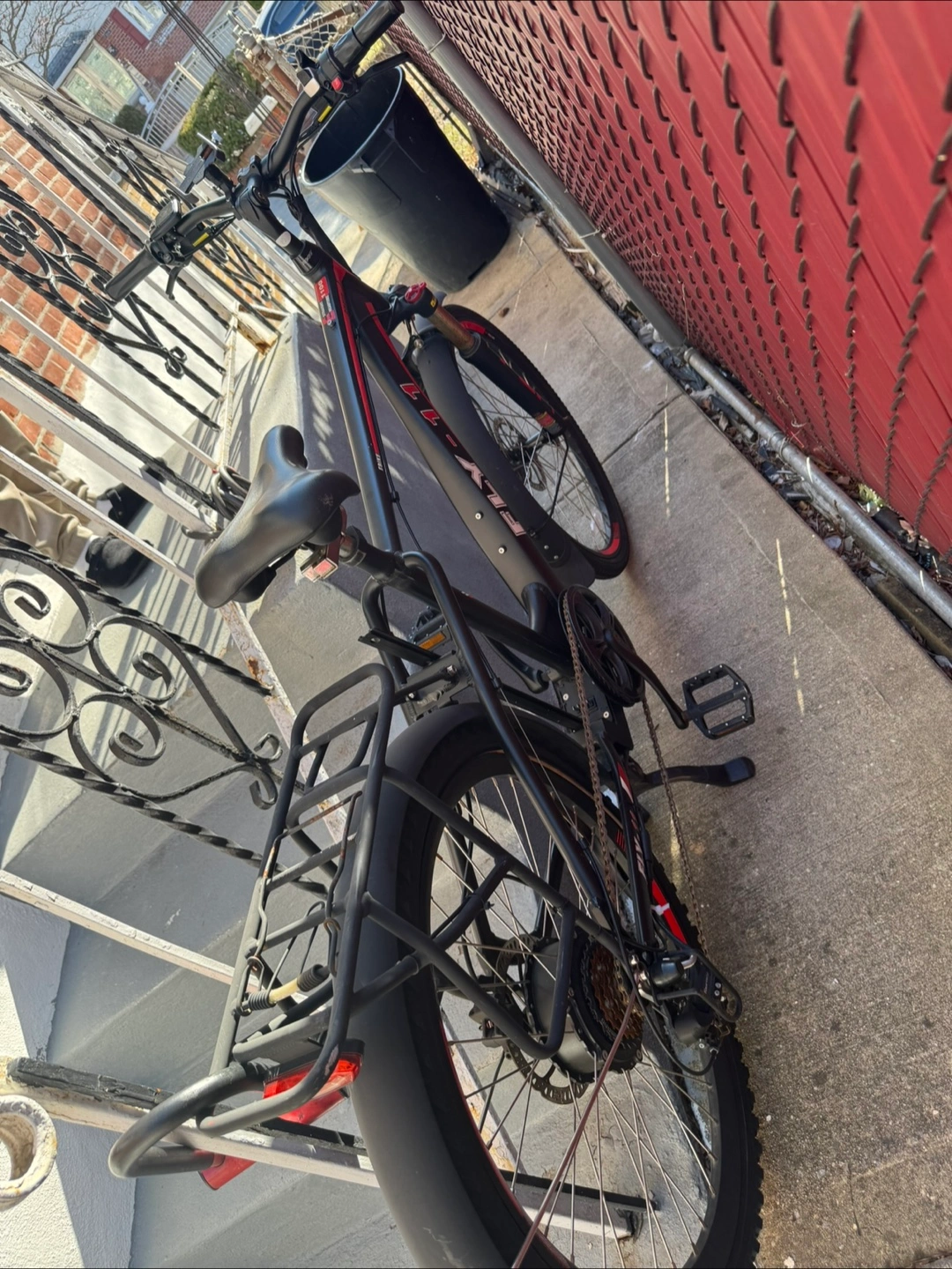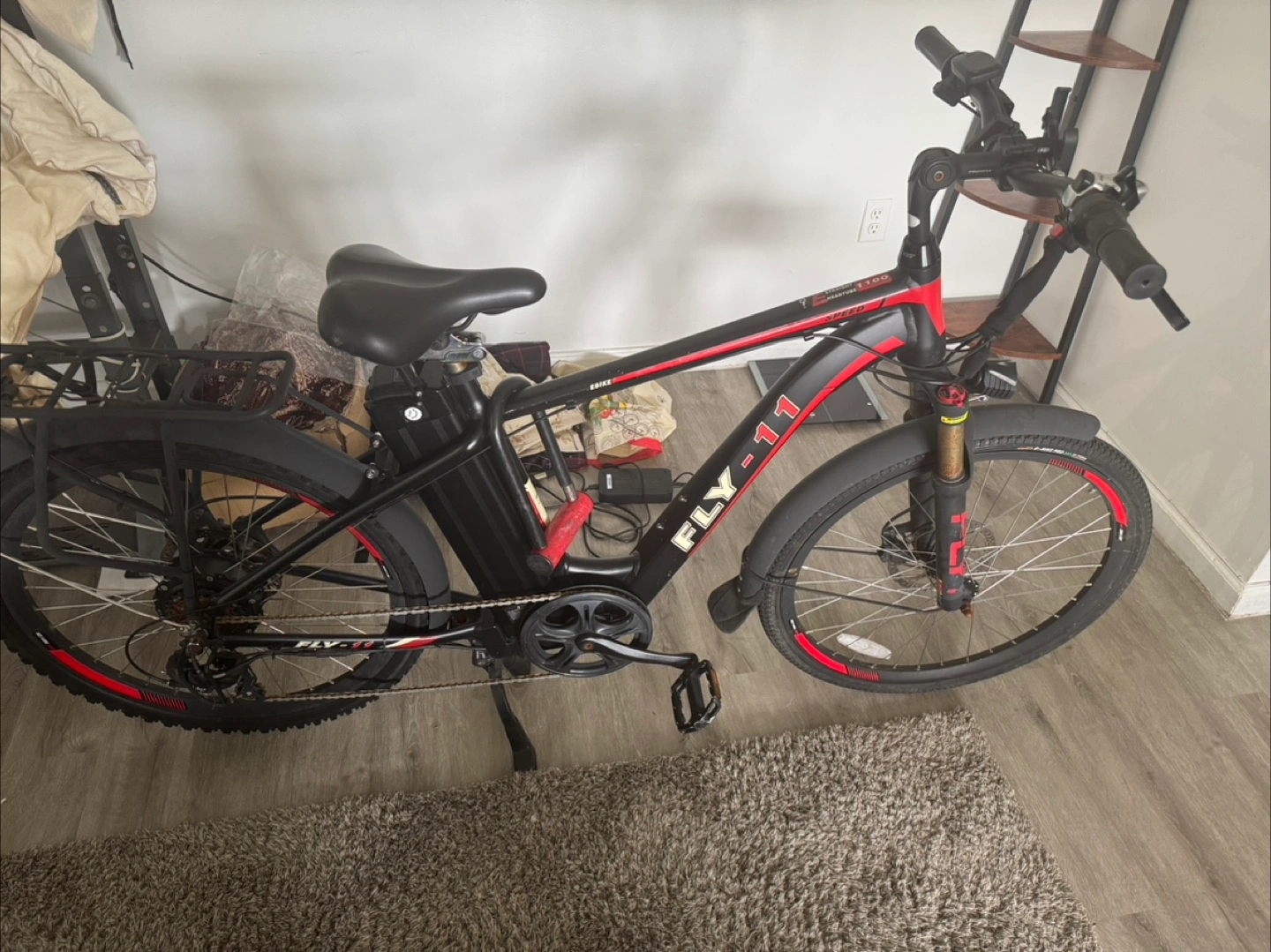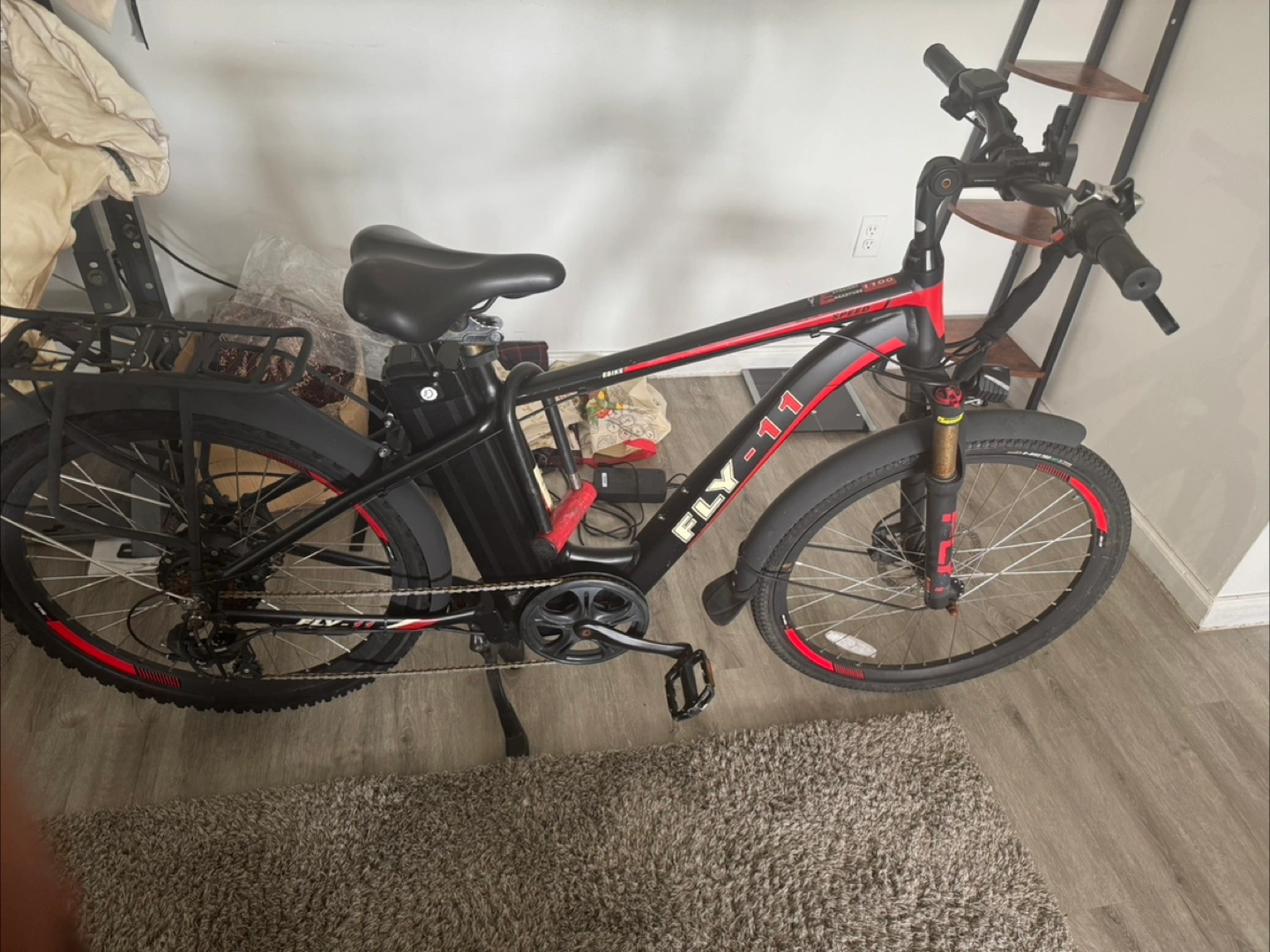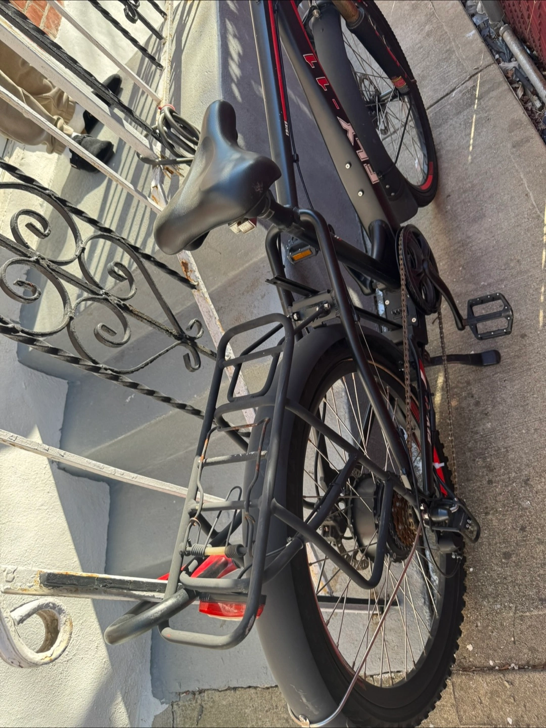 70Electric bike. Black and red frame. Rear rack. Thick tires. Needs a new home 1841 miles. Receipt of purchase available Battery lasts 8-9 hours on a single charge on second speed OR BEST OFFER