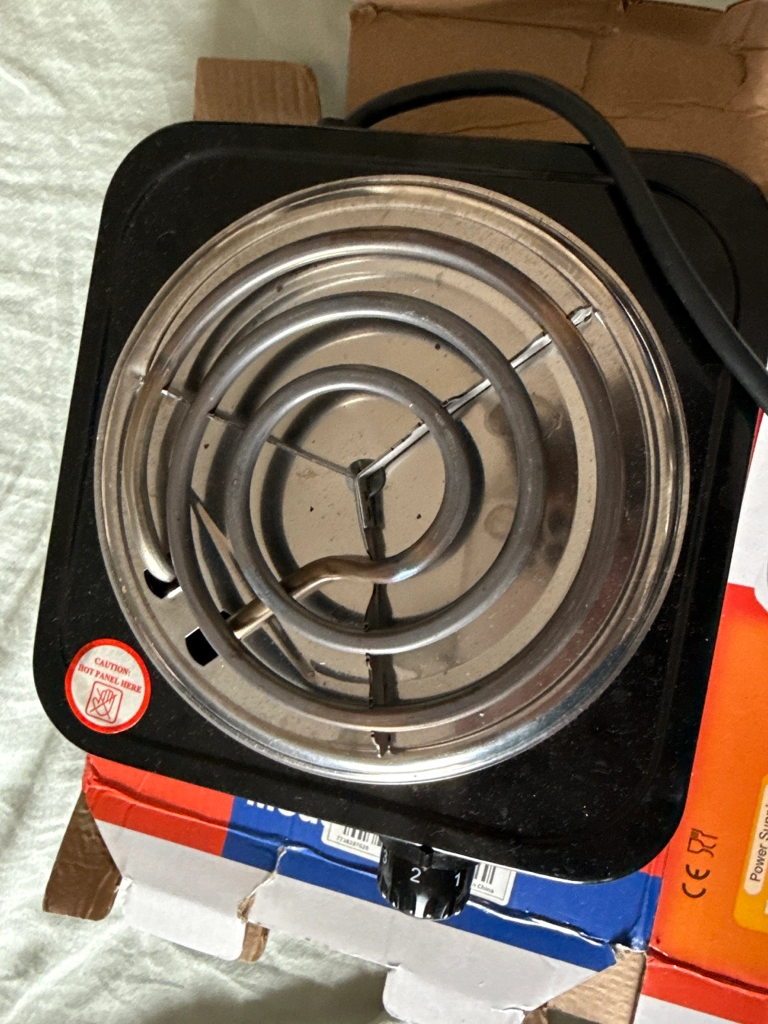 Compact electric single burner hot plate. Features a simple control dial. Good for small kitchens or dorms. Includes power cord.