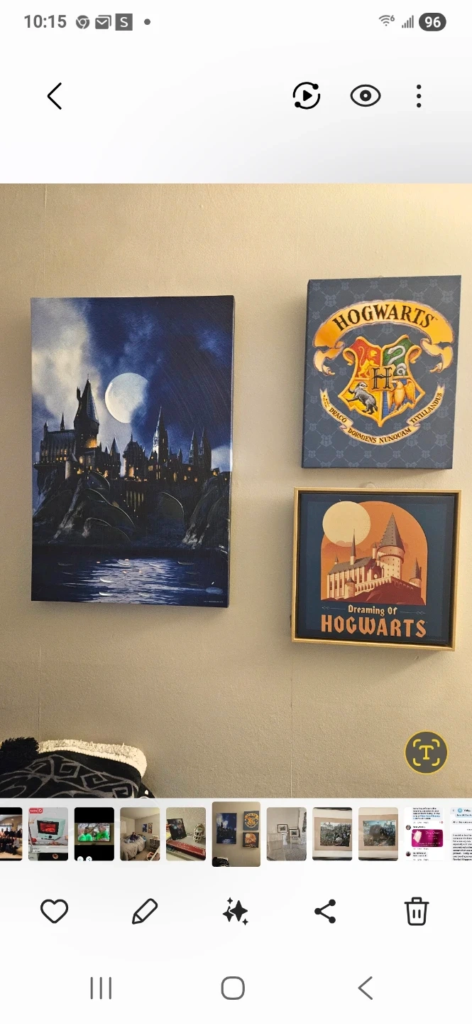 Add a touch of magic to your walls with this Harry Potter-themed decor set. It features a canvas print of Hogwarts at night and a framed sign that says 'Dreaming of Hogwarts'. The set also includes a Hogwarts crest wall art piece.