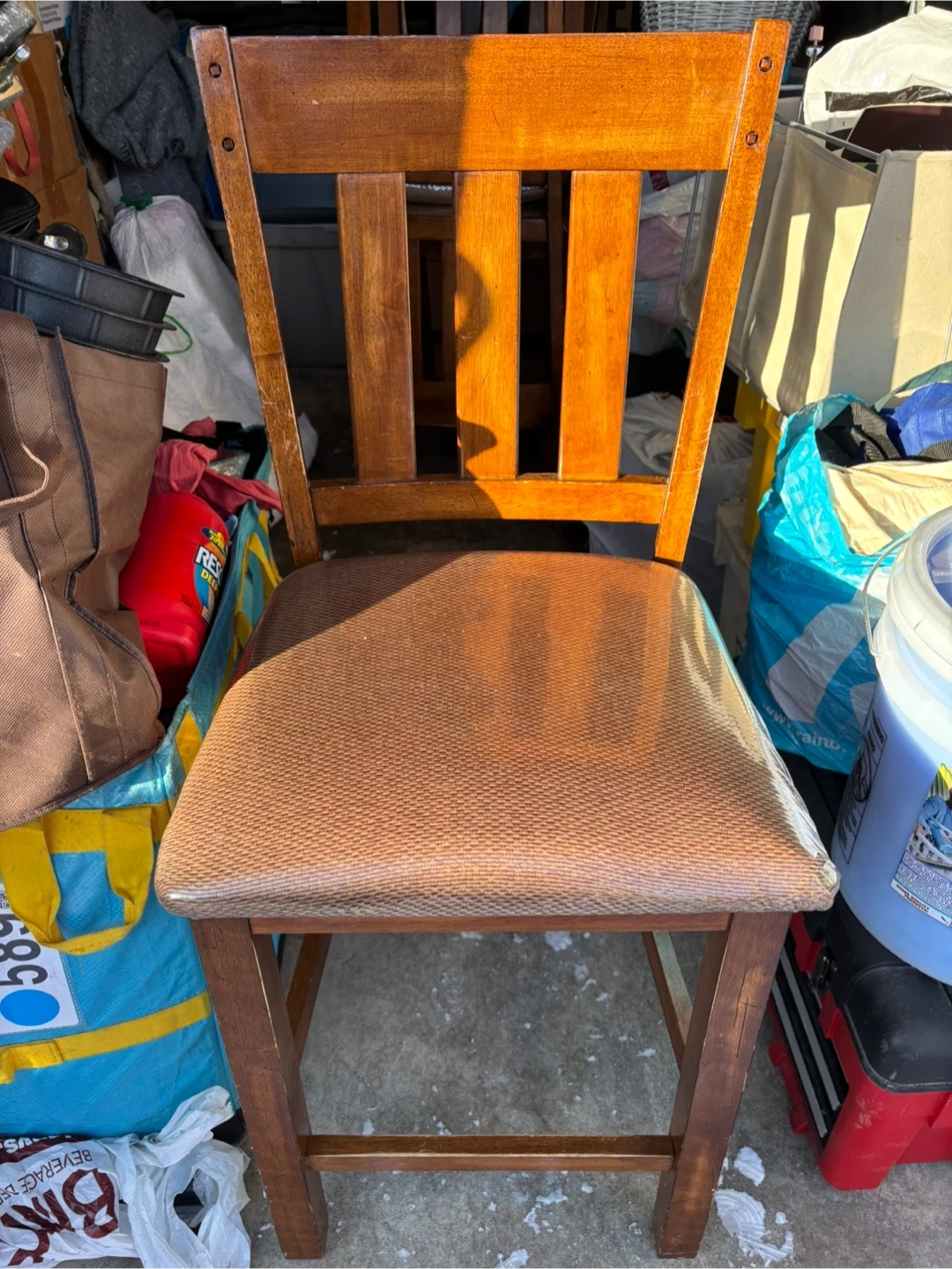 This wooden stool has a classic design with a comfortable padded seat.The warm wood finish complements various decor styles.
