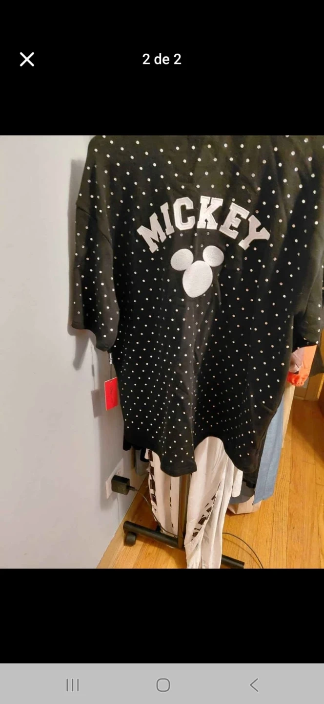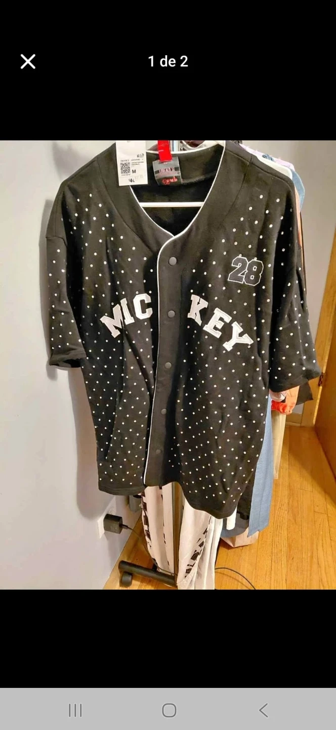 Selling a cool Mickey Mouse baseball jersey! It's black with white polka dots and Mickey's name and silhouette on the back. Size is M