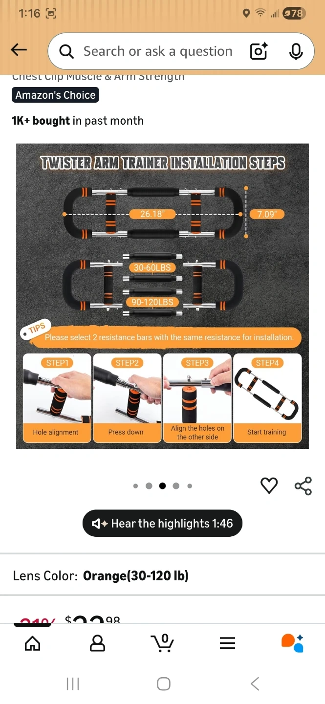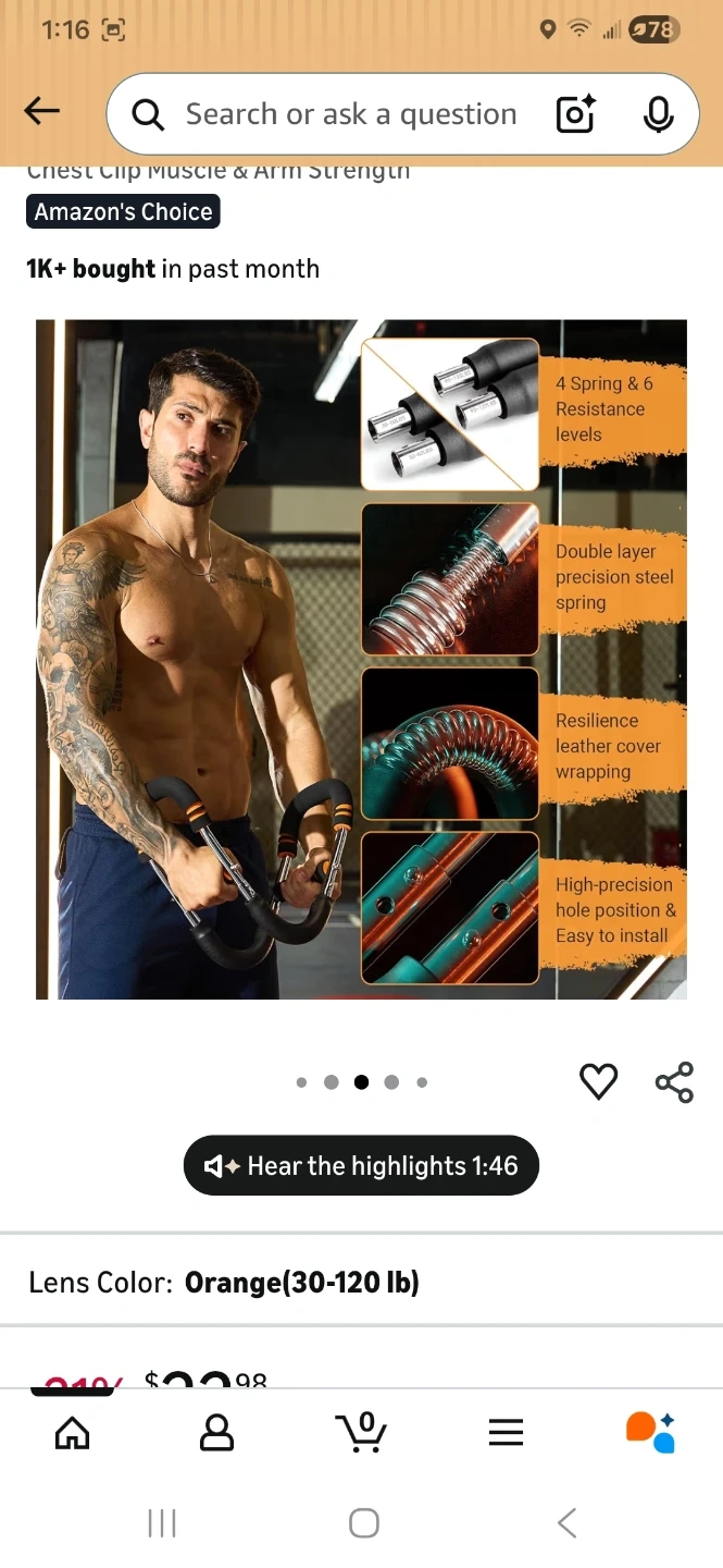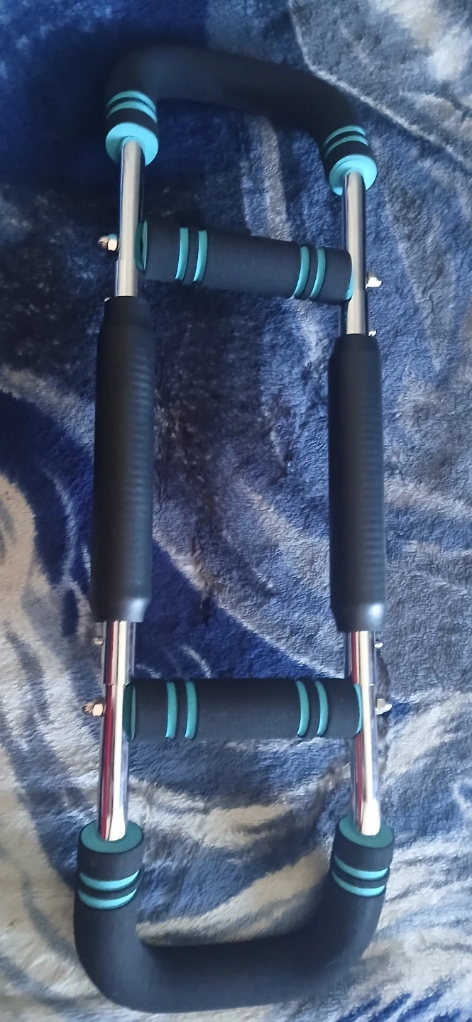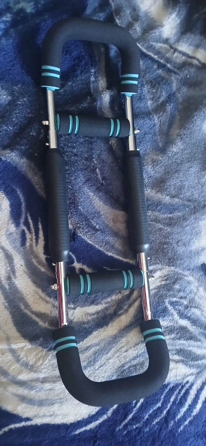 This adjustable arm and chest trainer features a metal frame with foam padding. It comes with multiple progressive resistance levels, ranging from 30 lbs to 120 lbs. It's great for strengthening your upper body at home!