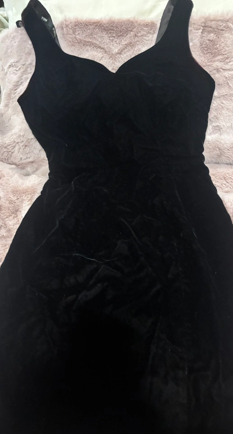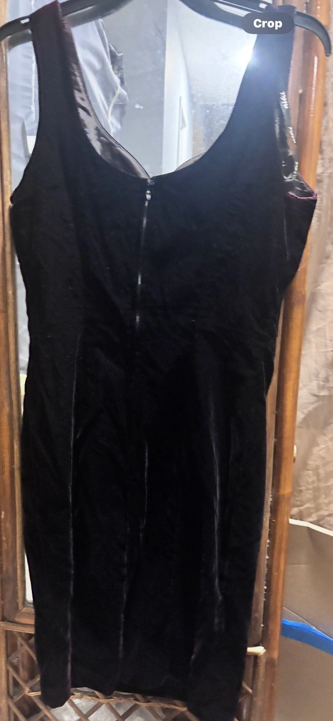 Elegant vintage black velvet dress by Karen Lucas for Niki, featuring a timeless, flattering silhouette with wide straps and a softly contoured bodice. The rich velvet fabric has a beautiful luxe sheen, perfect for cocktail events, evening wear, holidays, or formal occasions. This is a classic vintage piece with quality construction and a dressy feel that never goes out of style. Brand: Karen Lucas for Niki. Size: Women's 12. Color: Black. Fabric: Velvet (soft, plush finish). Style: Vintage cocktail / evening dress. Sleeveless with wide straps. Back zip closure. Fully lined and Made in USA. Very good vintage condition overall. Velvet shows natural nap/brush marks, which are normal for velvet and part of its character. Classic vintage velvet — elegant and timeless. Structured, flattering fit. Perfect for holidays, winter events, cocktail parties, or formal evenings.
