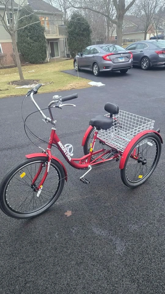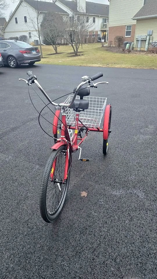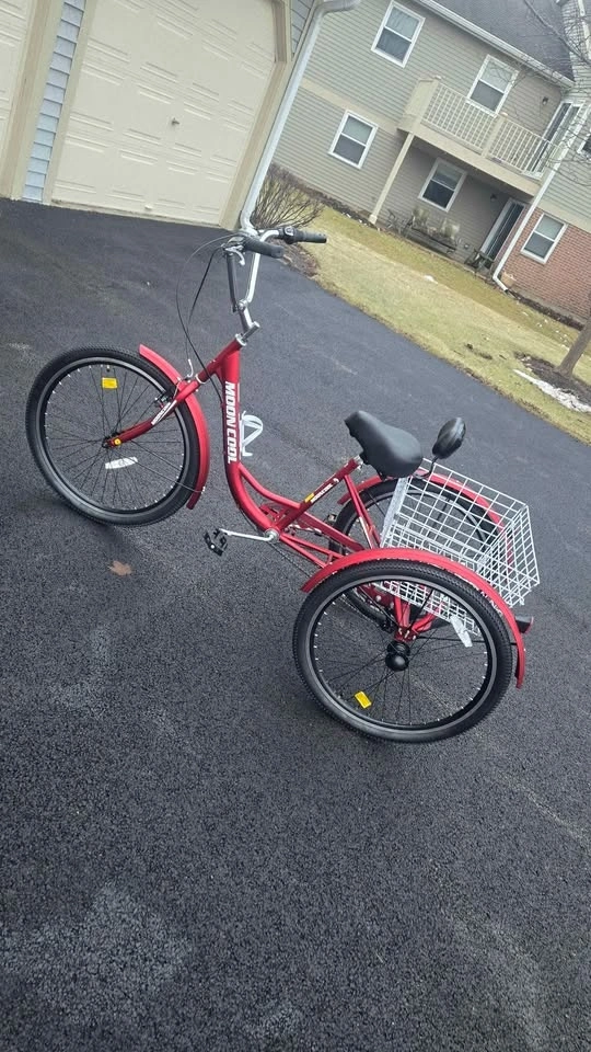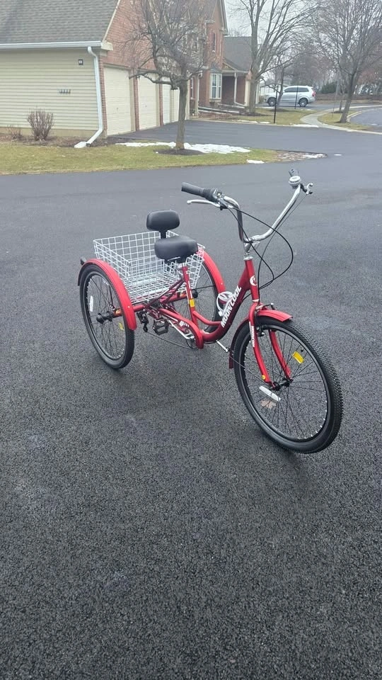 Brand new never used adult tricycle 24 inch model. Very stable and sturdy, low step-through bike for adults (4'11"-5'10"), large rear basket, steel frame (350lb capacity) 7-speed model.