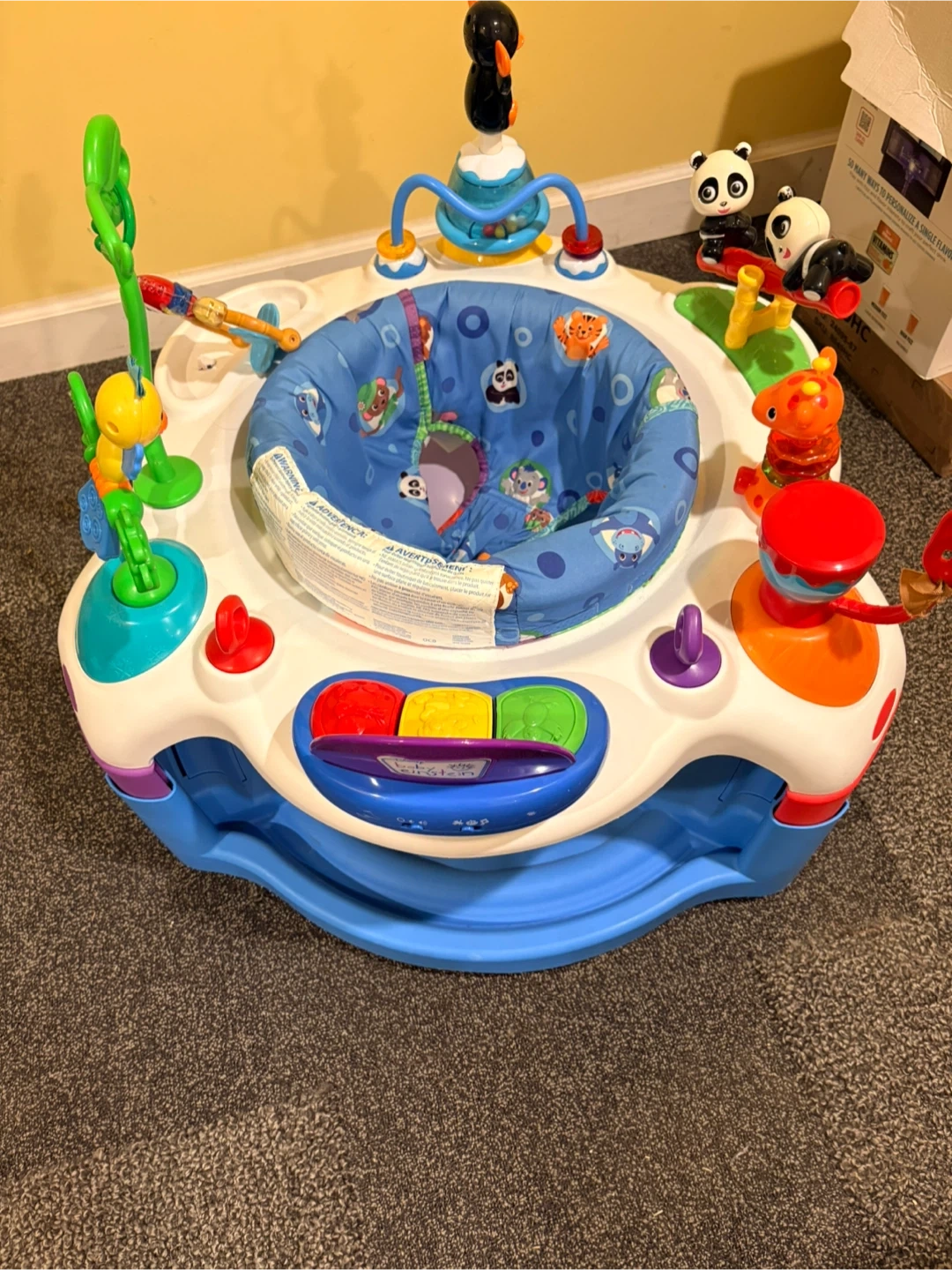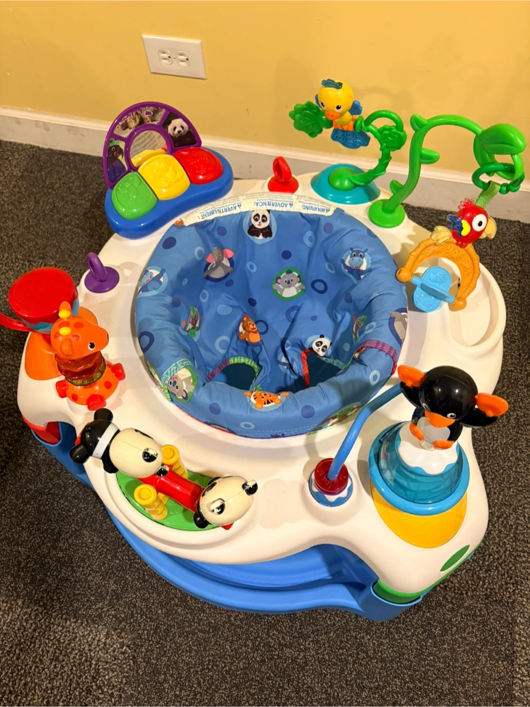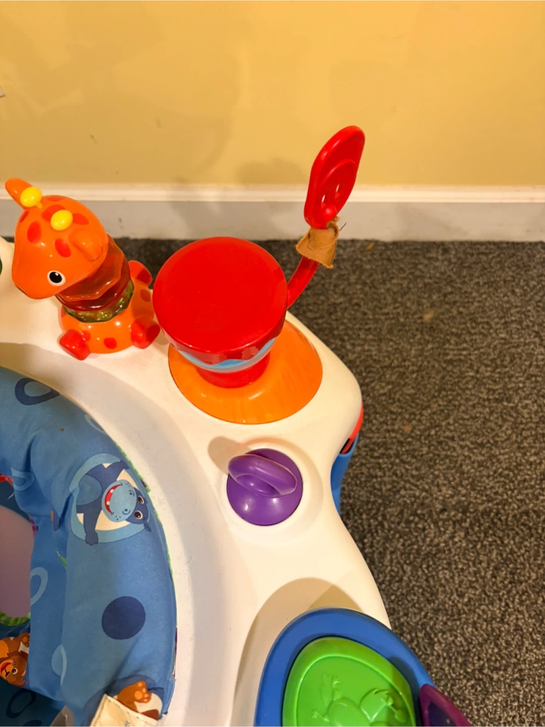 360 degrees of fun! This activity saucer is sure to keep your baby busy and happy while working on his/her motor skills and hand eye coordination.