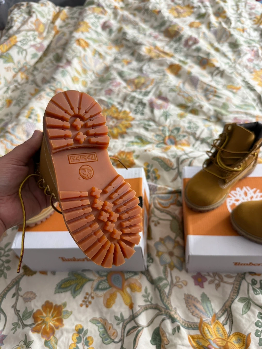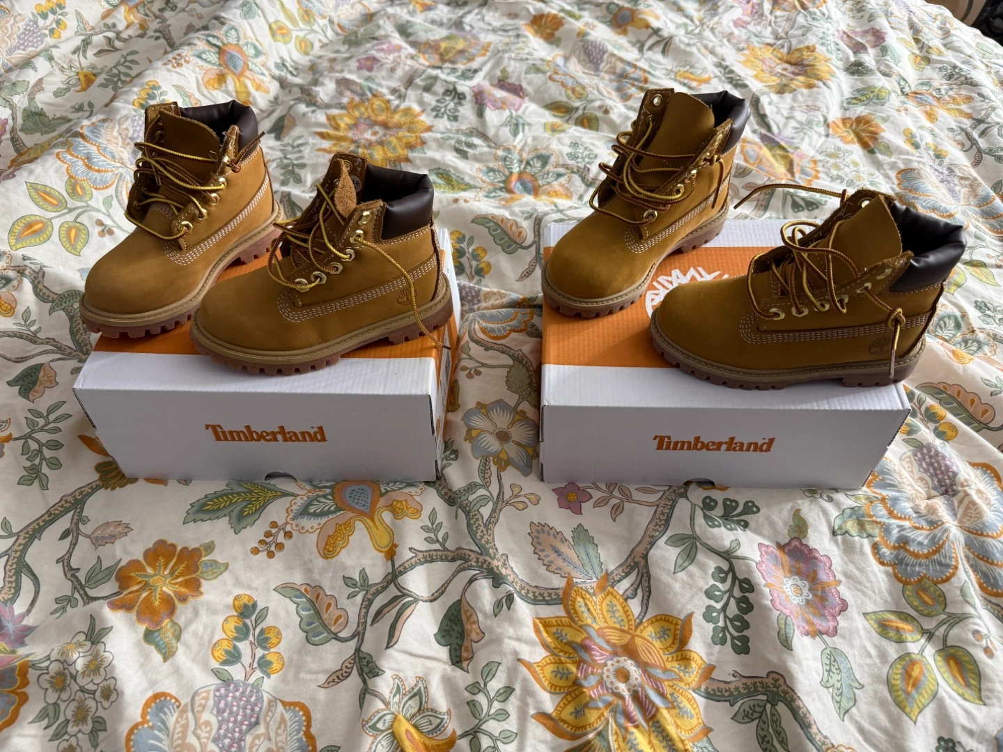 I'm selling these Timberland toddler premium 6-inch waterproof boots. They are in great condition and come with the original box! Perfect for keeping your little one's feet dry and stylish.. worn only once both size 9 good condition