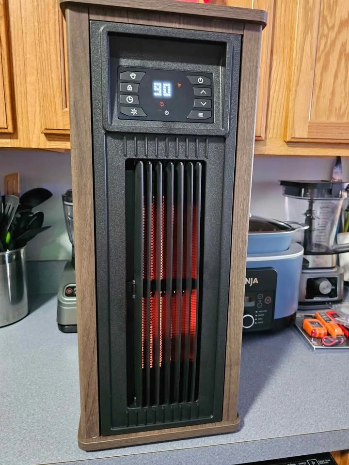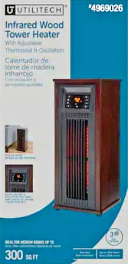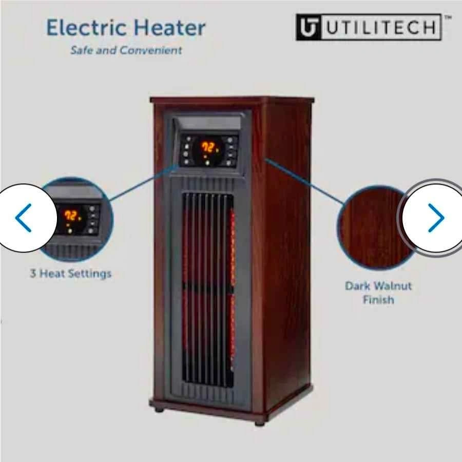 New in the box. Never used! This digital infrared heater is designed to provide consistent and customizable heat for medium sized rooms. Whether it's your office, garage, bedroom, or any other room in your home, you can rely on this heater to maintain your ideal temperature. The heater's quartz bulbs reflect heat onto nearby objects just like the sun, warming the area in front of the heater gently and efficiently. The quartz heater boasts a tough metal safety grill over the bulbs to help prevent them from breaking or coming into contact with flammable items. A built-in sensor shuts the unit off immediately when it reaches an unsafe temperature and when it falls off, helping to prevent damage due to overheating and tipping over. A large, easy to read digital display informs you of the room's current temperature and a full-function remote control allows for easy temperature control from across the room. Featuring an eco friendly mode, this digital heater lets you monitor your energy consumption and adjust the heat setting to minimize your usage and reduce your electricity bill. You can also set a timer on this heater for up to 12 hours with auto shut off once the desired time frame is reached. Adjustable thermostat and eco mode. 3 Heat settings: High,Low,ECO maintains at 68 Fahrenheit. Broad range oscillation for front grill. Ideal for medium sized rooms. Thinner outlook, leave more space. 12 Hour programmable timer. Remote control with 2 AAA batteries excluded for added convenience. Extra large LED display for easy reading. Cool touch exterior cabinet.