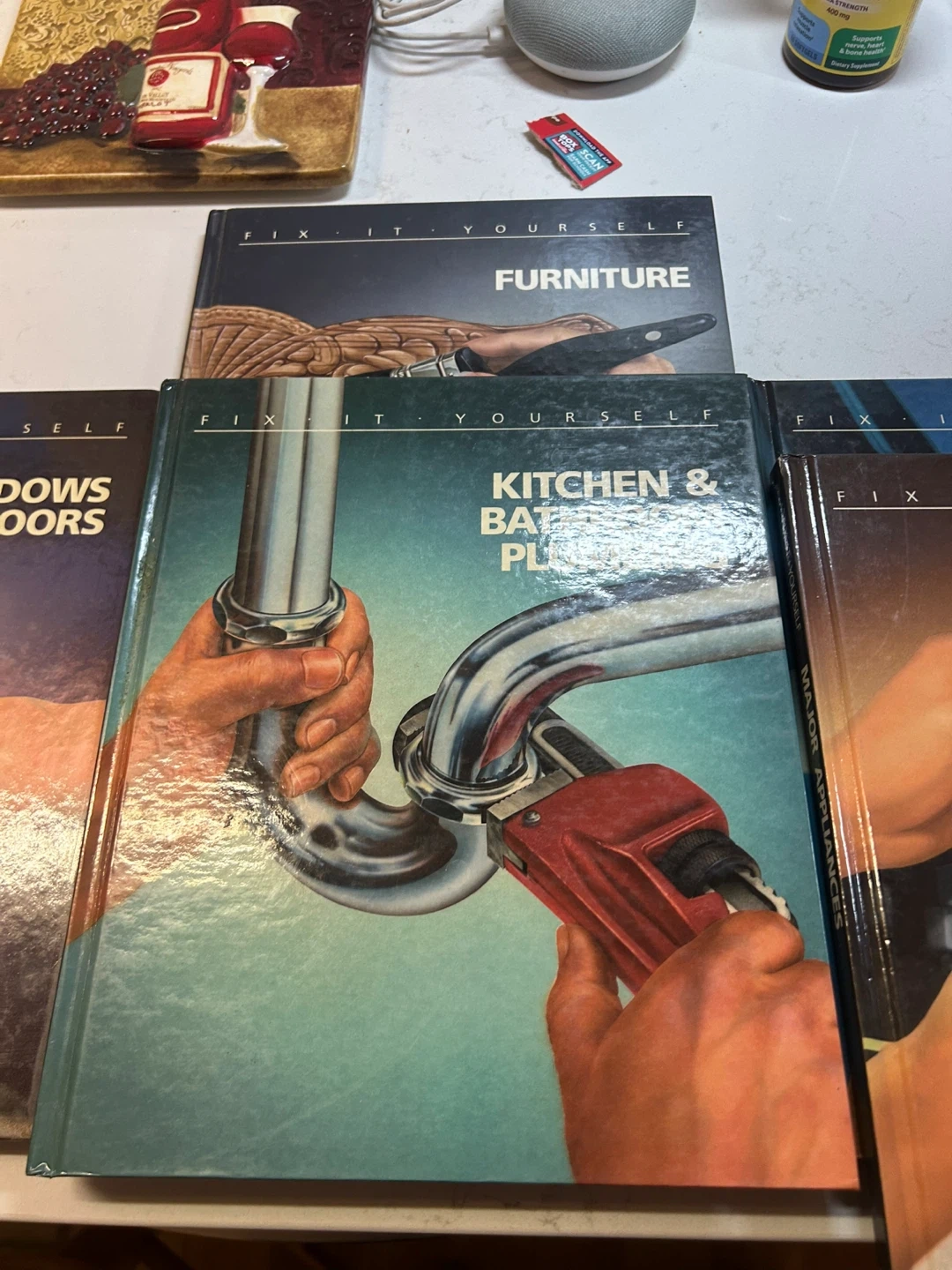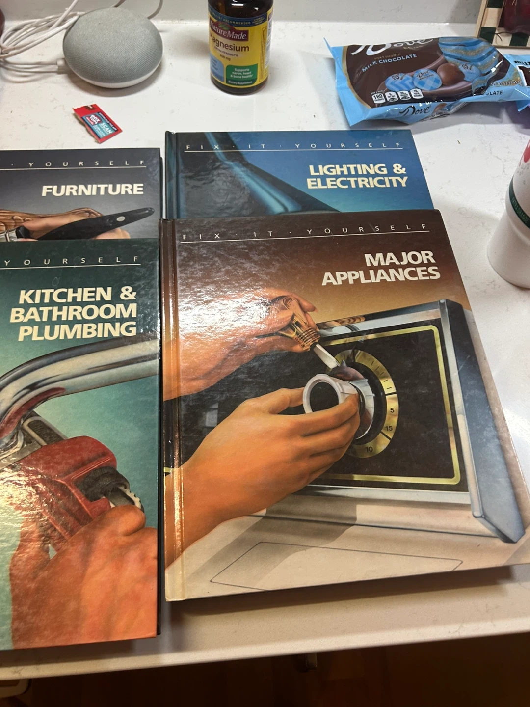 This collection includes 'Fix It Yourself' books covering Furniture, Lighting & Electricity, Major Appliances, Kitchen & Bathroom Plumbing, and Windows & Doors. They offer detailed guidance for home repairs and DIY projects. These books are great resources for anyone looking to tackle home improvement tasks themselves!