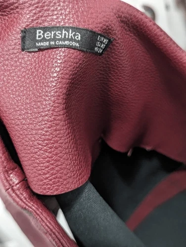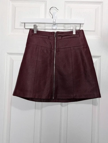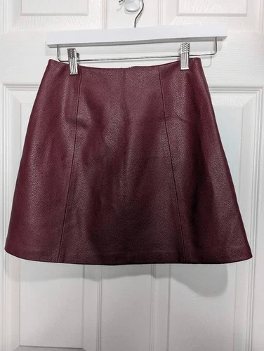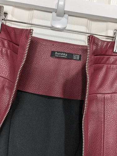 Bershka burgundy zippered leather skirt size xs